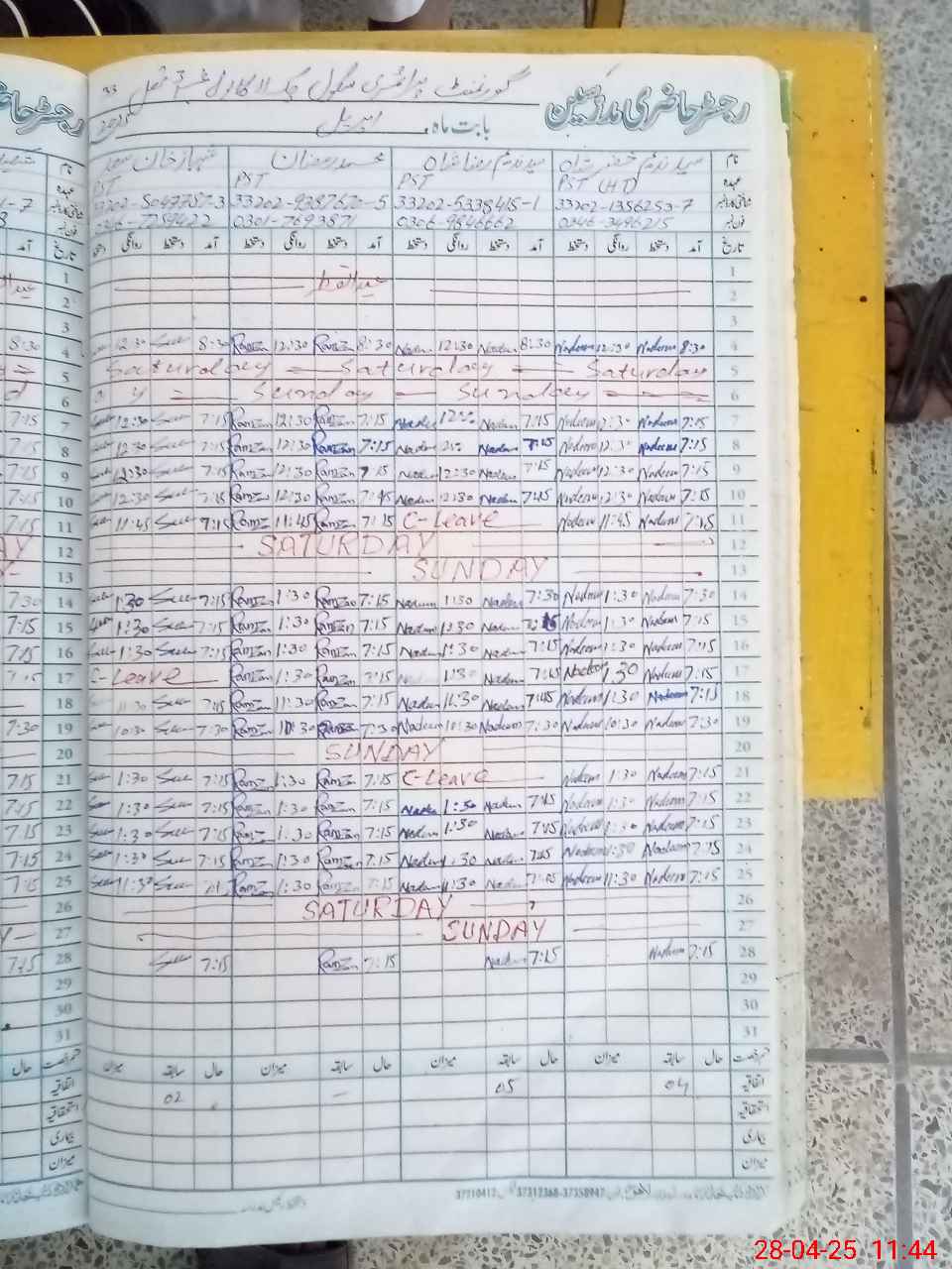 | CNIC | Full Name | Designation | R/C | Absence During Last Calender Month |