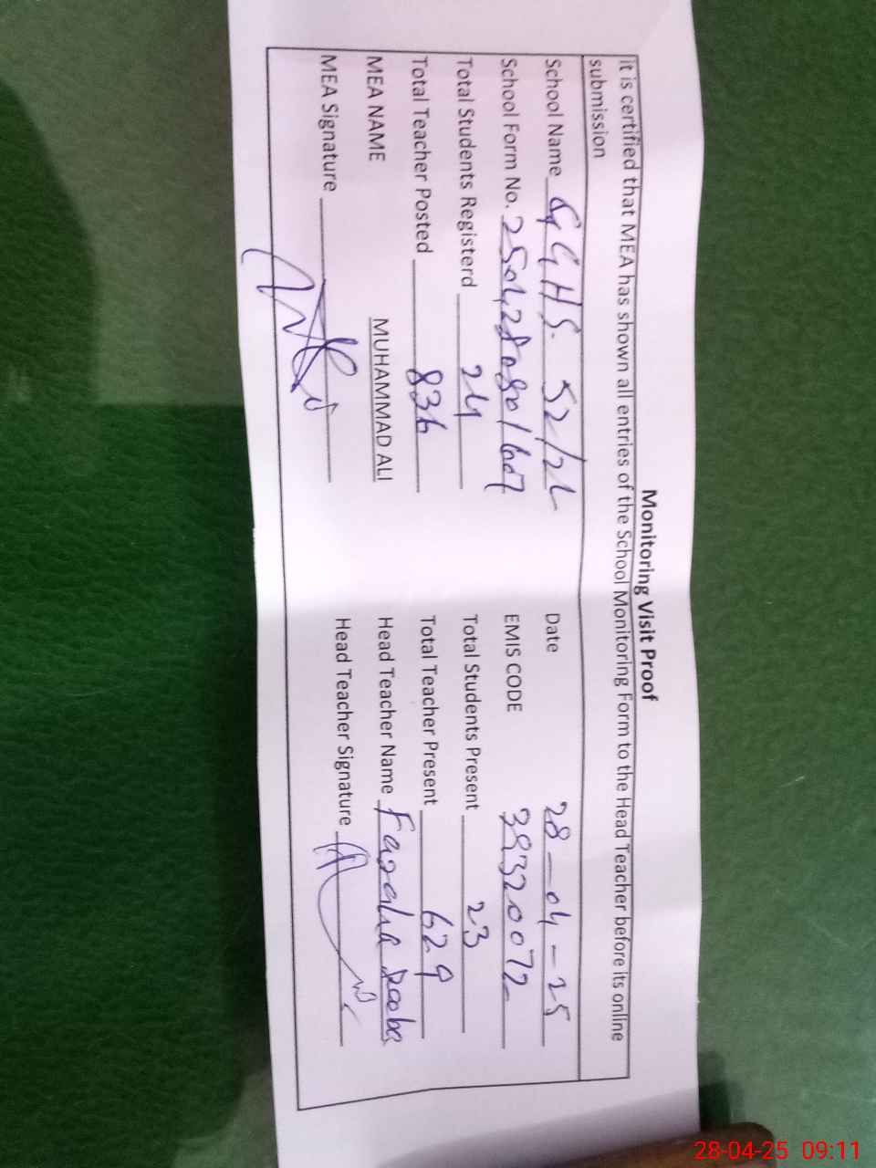 | EMIS Code: 39320072 | Name of School: GGHS CHAK NO. 52/2-L | |||