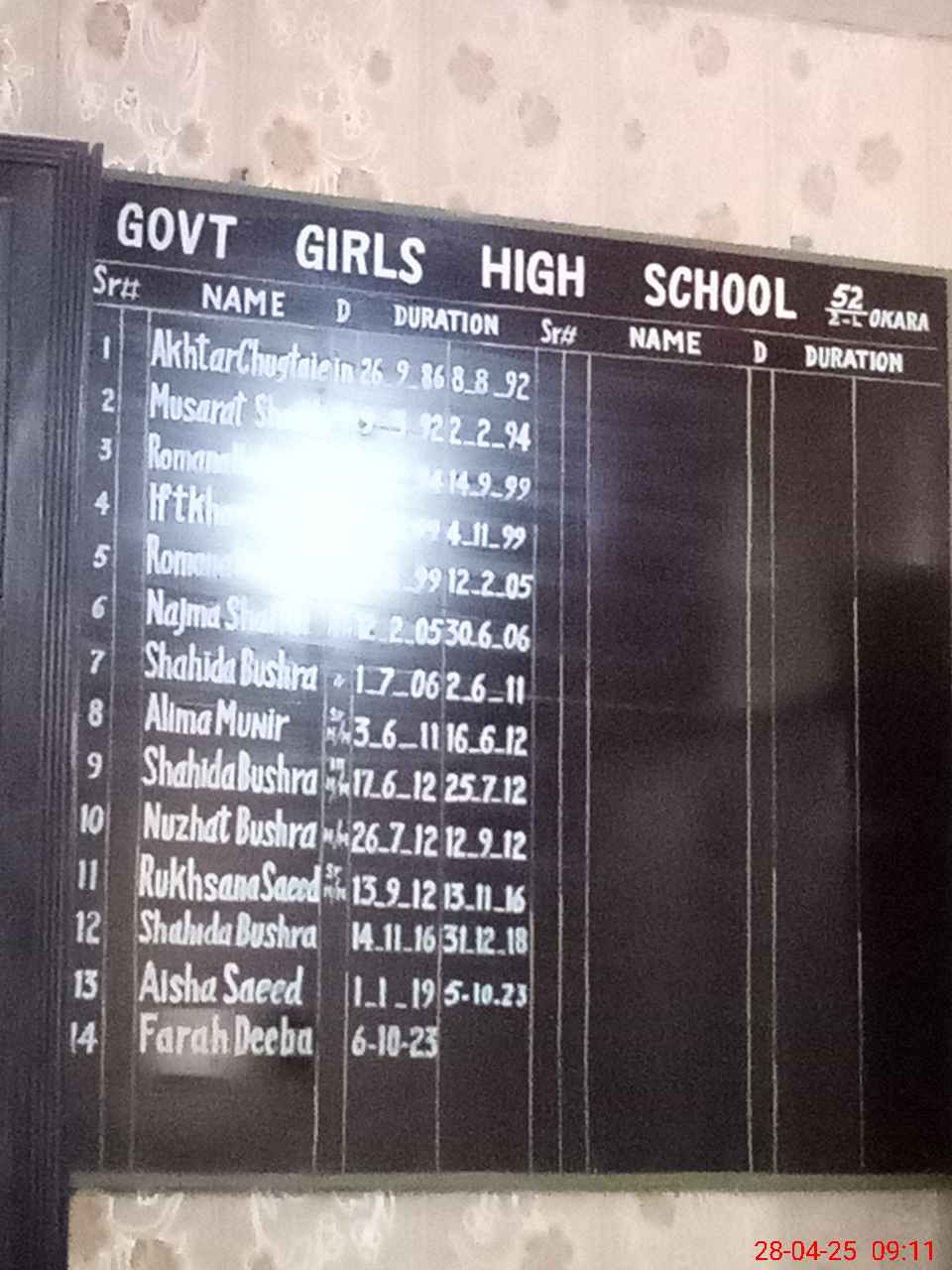| District: OKARA | Tehsil: OKARA | Markaz: SECONDARY-WING | Level: High | |