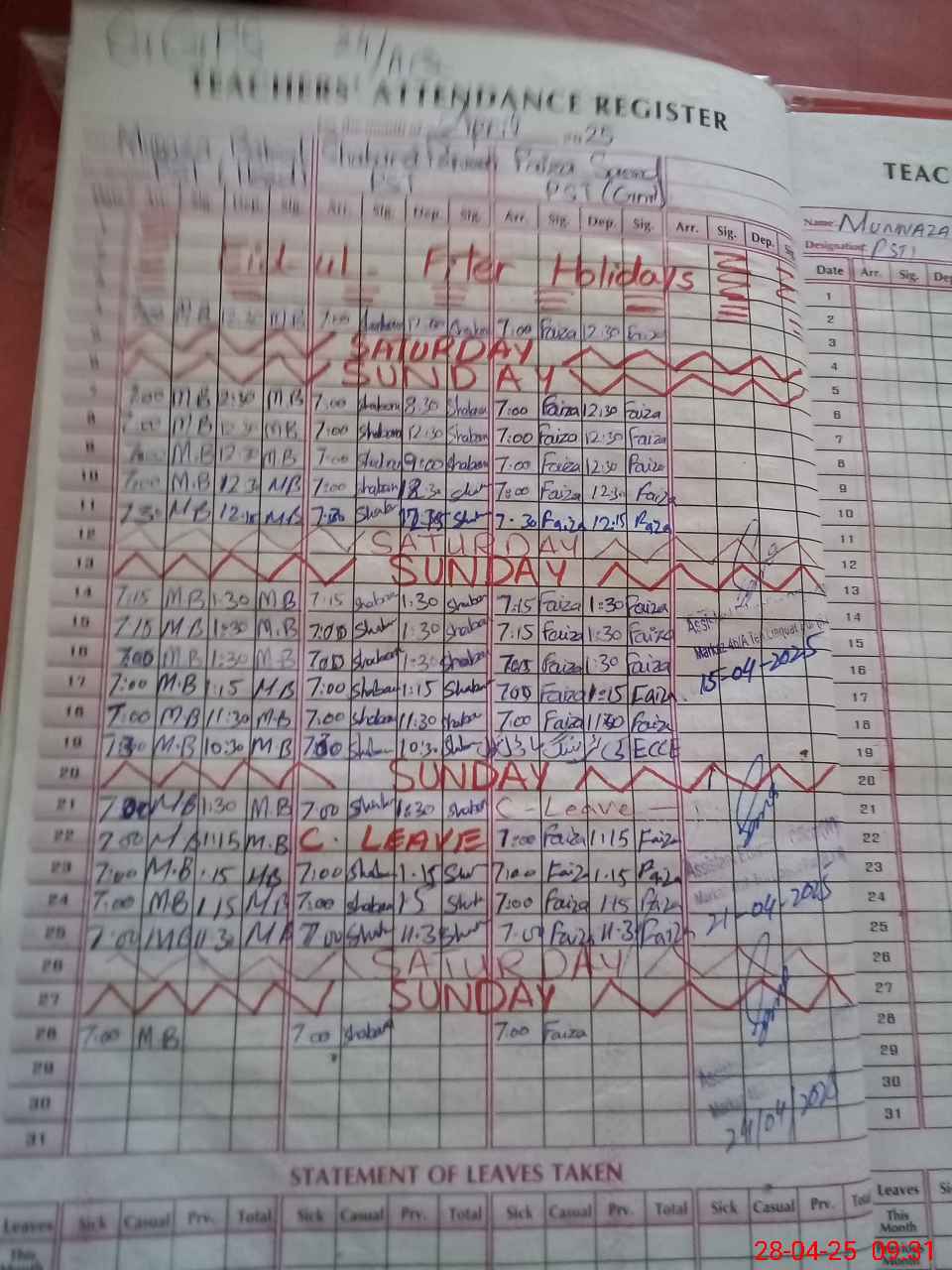 | Leave | Duty | Absent | Maternity | Medical | Ex- Pak |