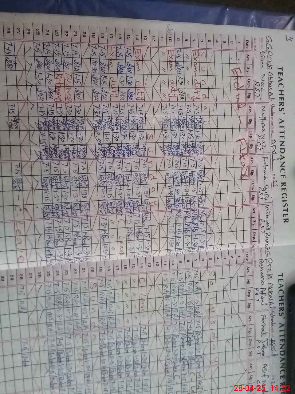 | CNIC | Full Name | Designation | R/C | Absence During Last Calender Month |