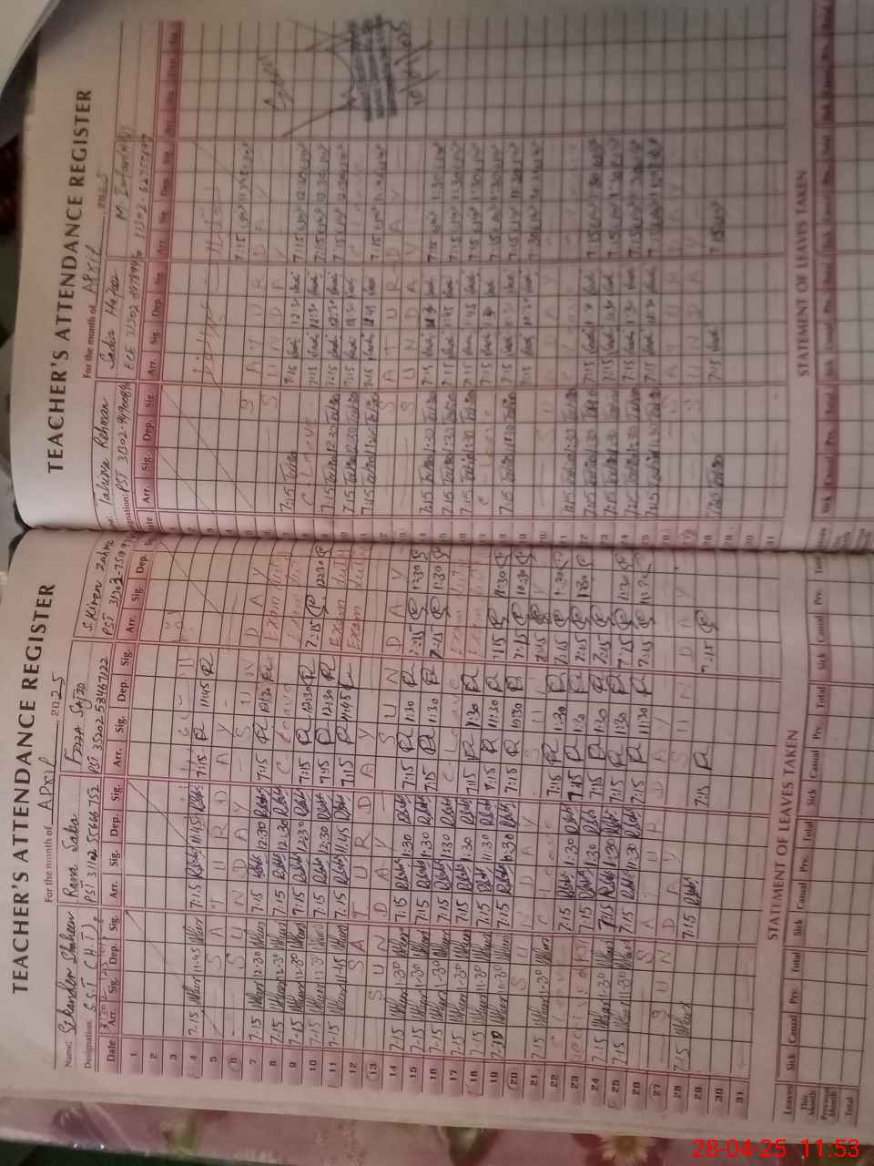 | CNIC | Full Name | Designation | R/C | Absence During Last Calender Month |