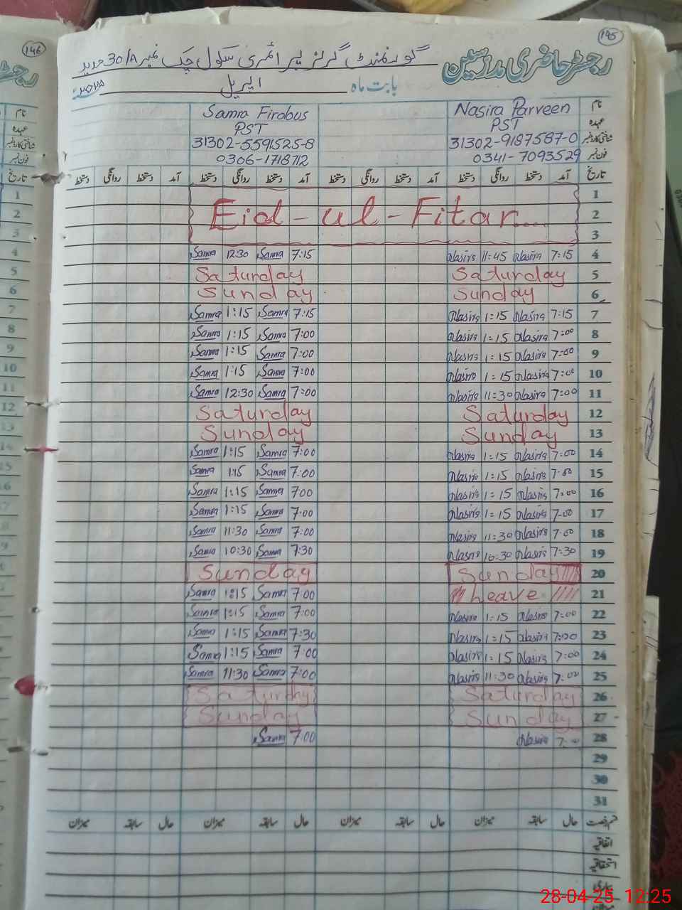 | Name: NA**** PE**** Designation: (School Headmaster's/Headmistress's) PST/PTC/JV Phone/Cell Number: 03**** |