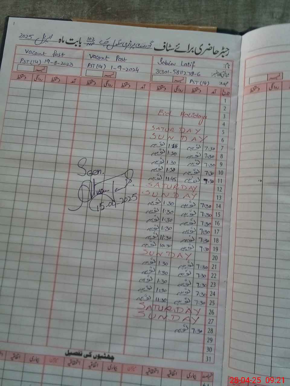 | Name: So**** La**** Designation: (School Headmaster's/Headmistress's) PST Phone/Cell Number: 03**** |