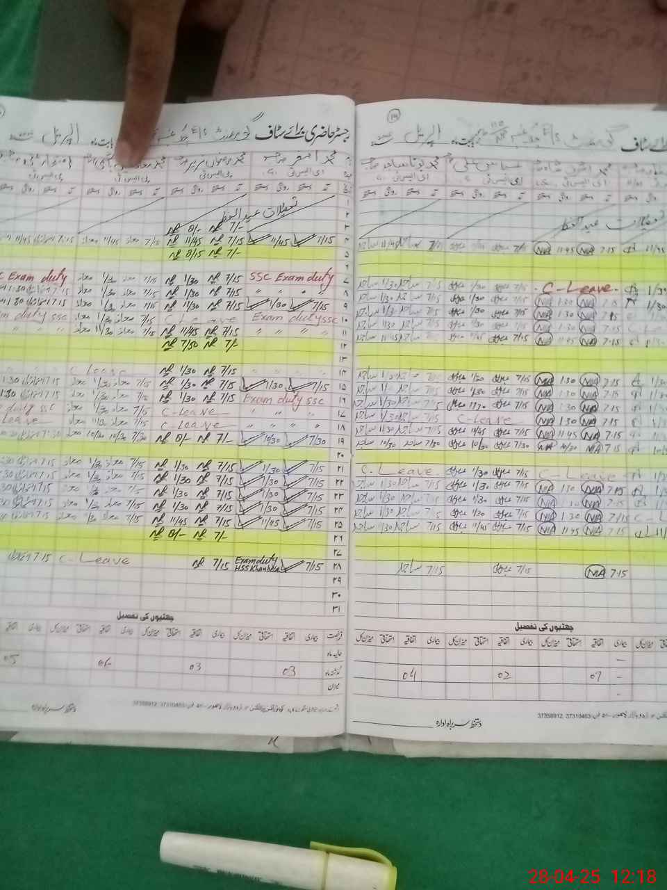 | CNIC | Full Name | Designation | R/C | Absence During Last Calender Month |