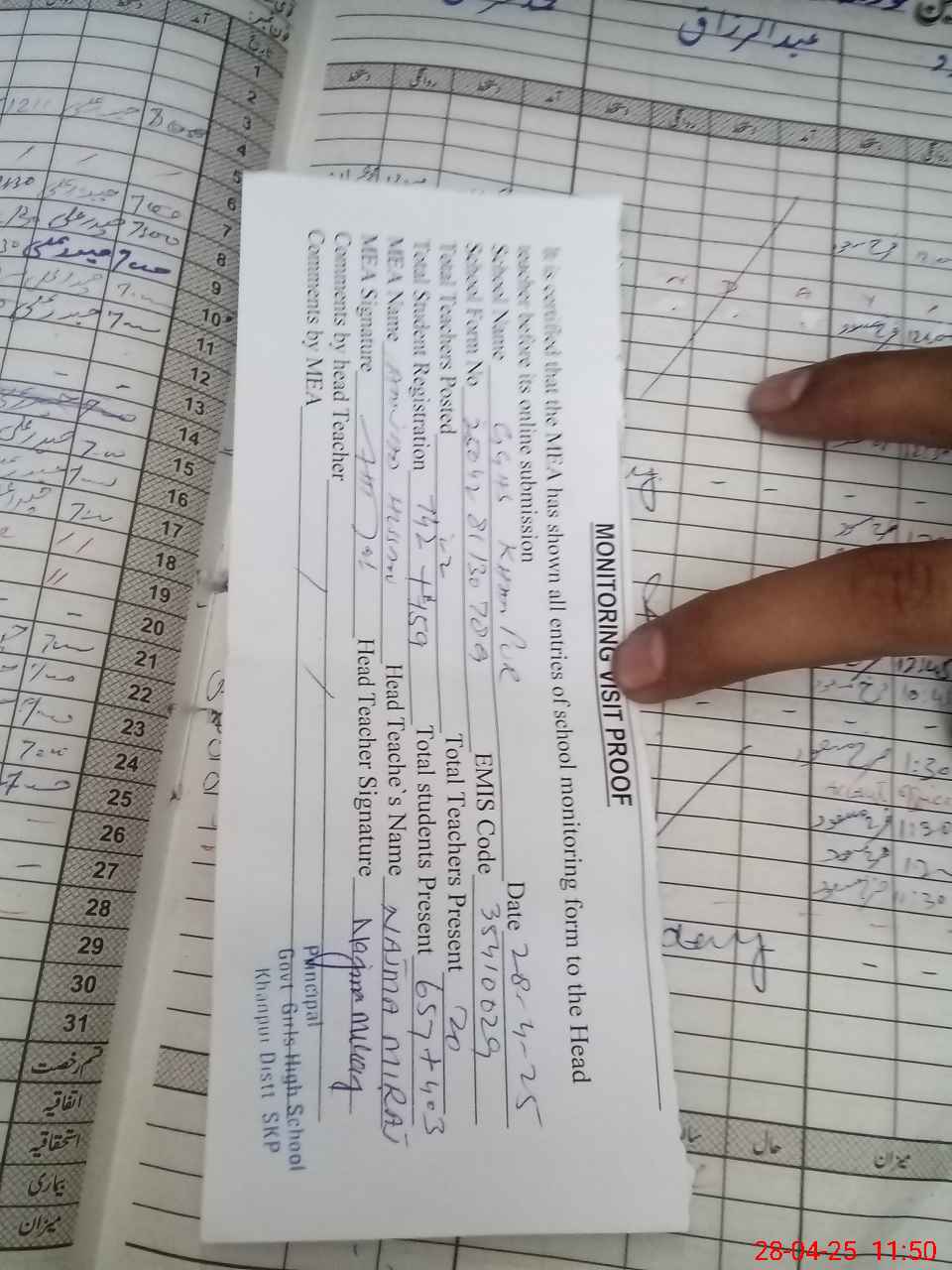 | EMIS Code: 35410029 | Name of School: GGHS KHANPUR | |||