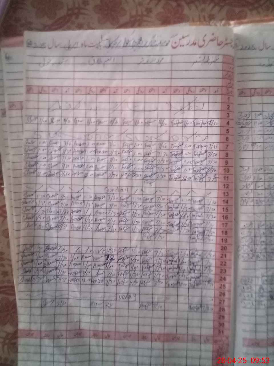 | CNIC | Full Name | Designation | R/C | Absence During Last Calender Month |