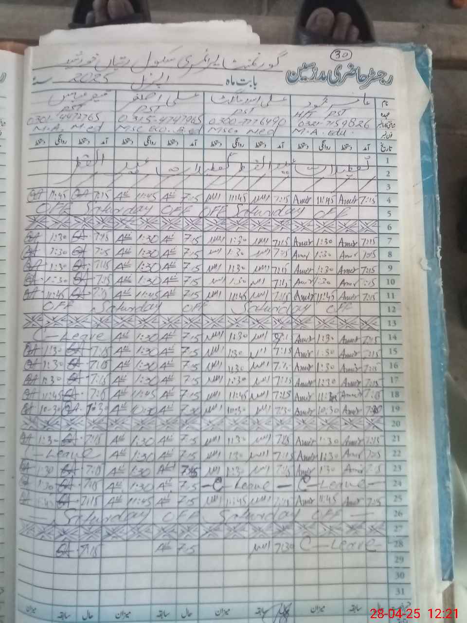 | CNIC | Full Name | Designation | R/C | Absence During Last Calender Month |