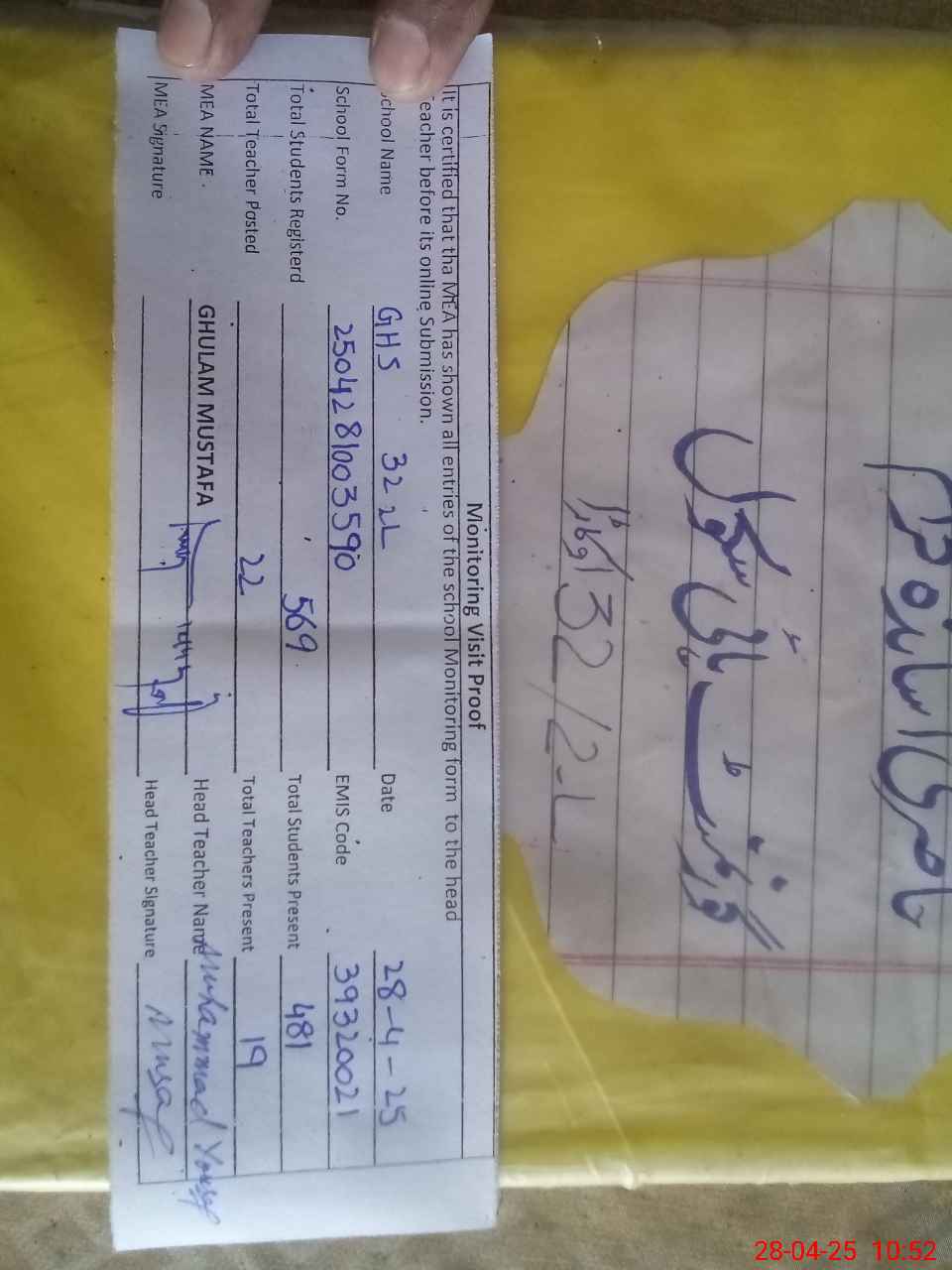 | EMIS Code: 39320021 | Name of School: GHS CHAK NO.32/2-L | |||