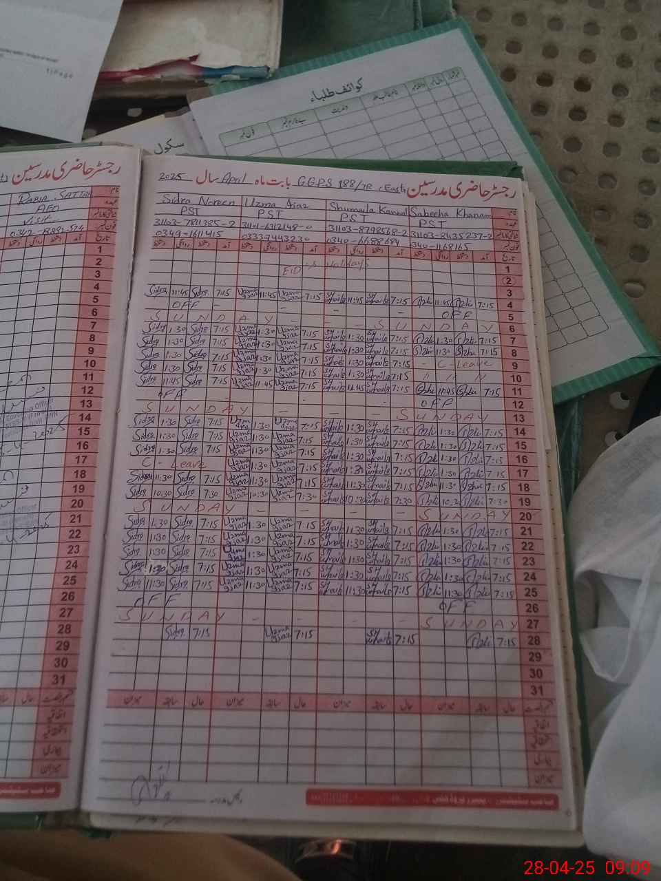 | Name: Sa**** Kh**** Designation: (School Headmaster's/Headmistress's) PST Phone/Cell Number: 03**** |