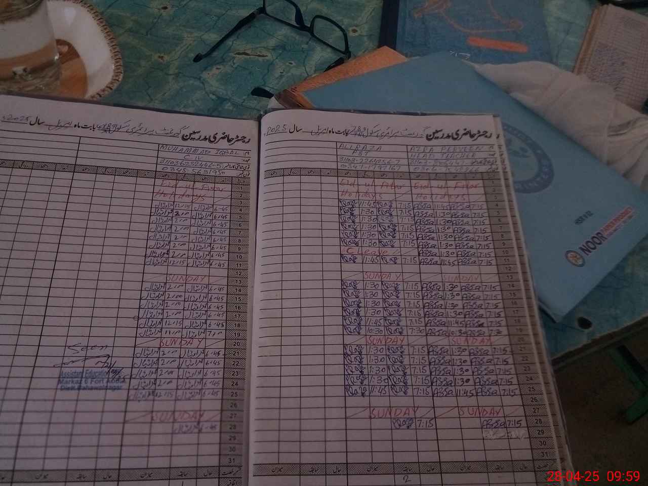 | CNIC | Full Name | Designation | R/C | Absence During Last Calender Month |