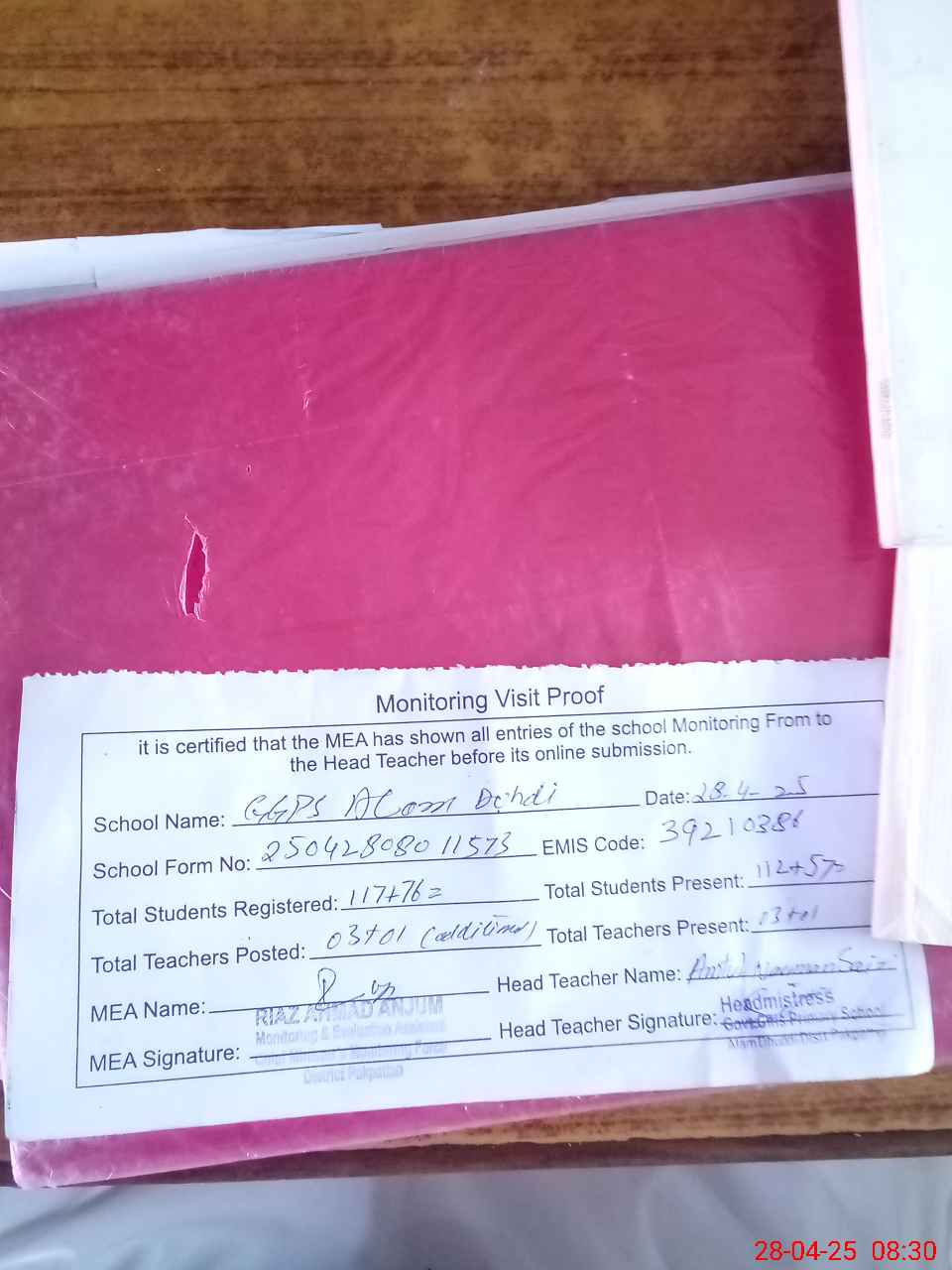 | EMIS Code: 39210386 | Name of School: GGPS ALAM DUHDI | |||