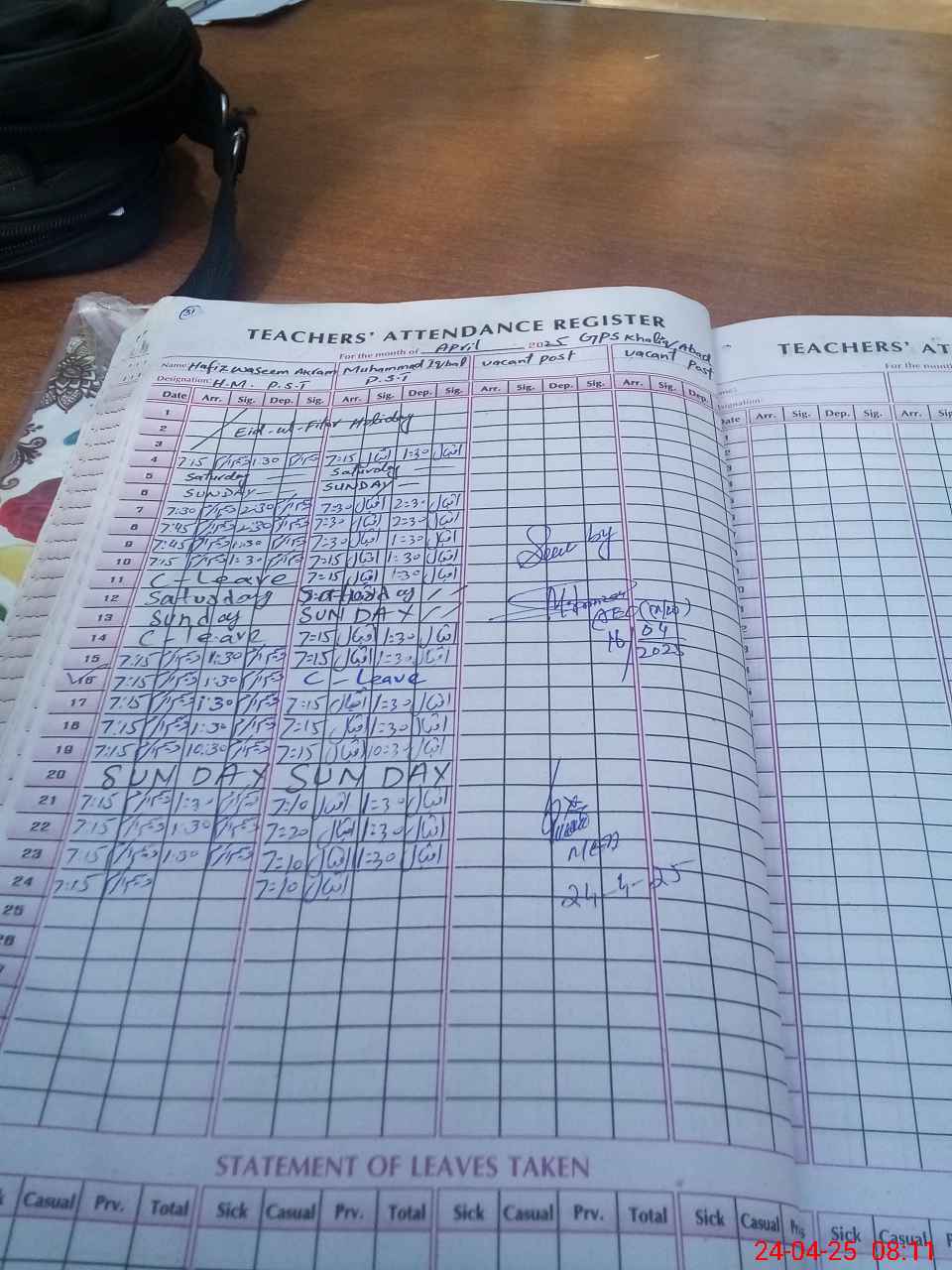 | 36**** | Ha**** Wa**** Ak**** | 1 | 0 | 0 | 0 | 0 | 0 | 0 | 0 | 0 | 0 | Absent (Un-Authorized) | |