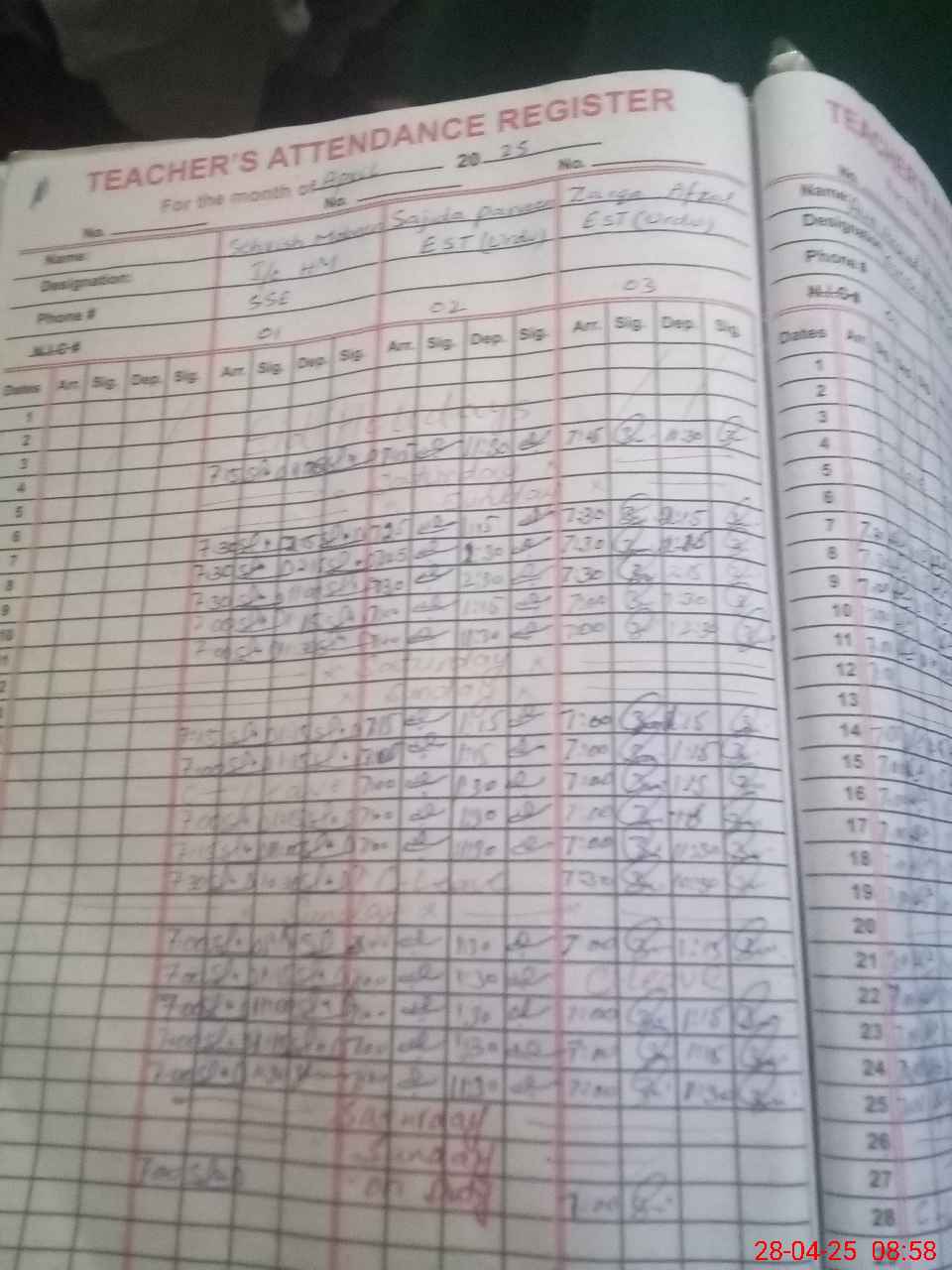 | Name: Sh**** Mu**** Designation: (School Headmaster's/Headmistress's) SST Phone/Cell Number: 03**** |