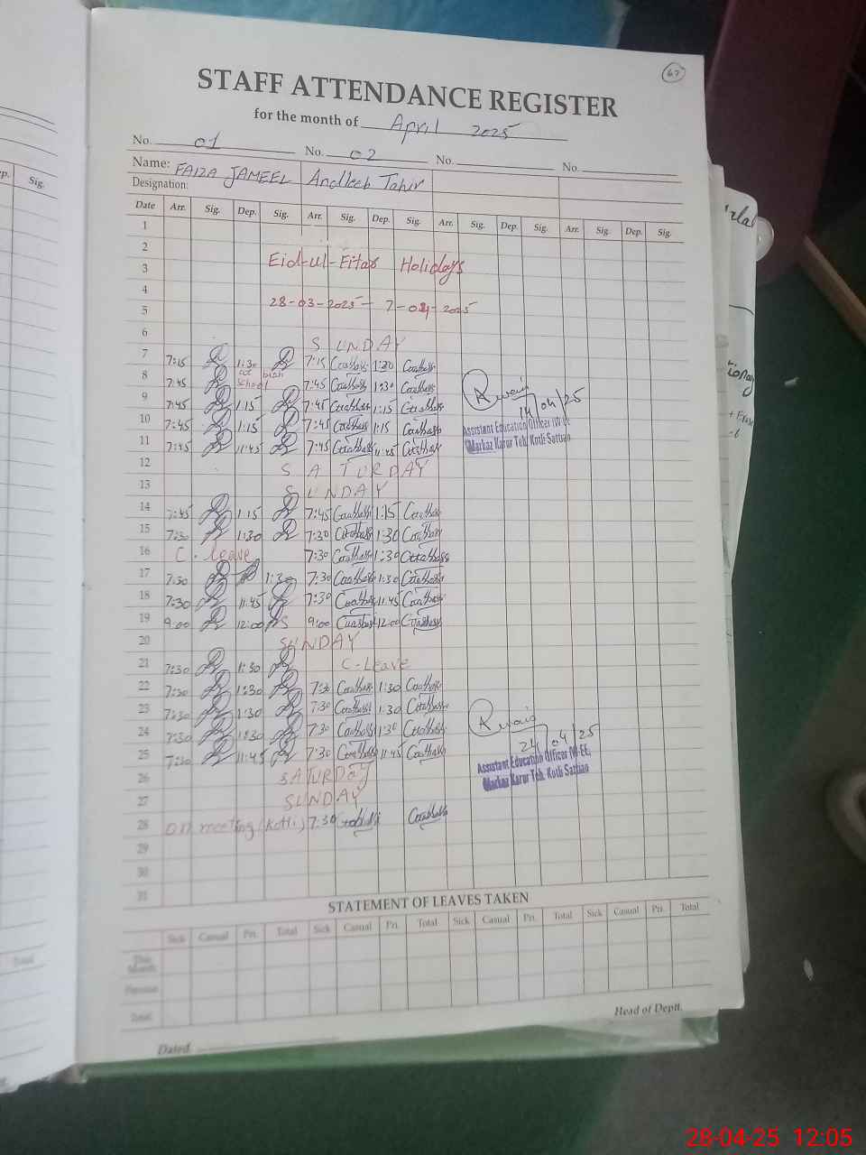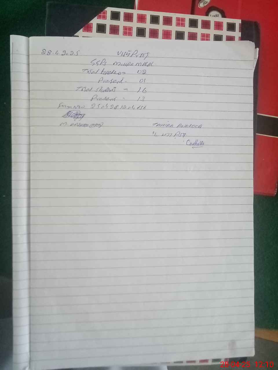 | Attendance Register | Head Teacher | MEA with School | Visit Proof |