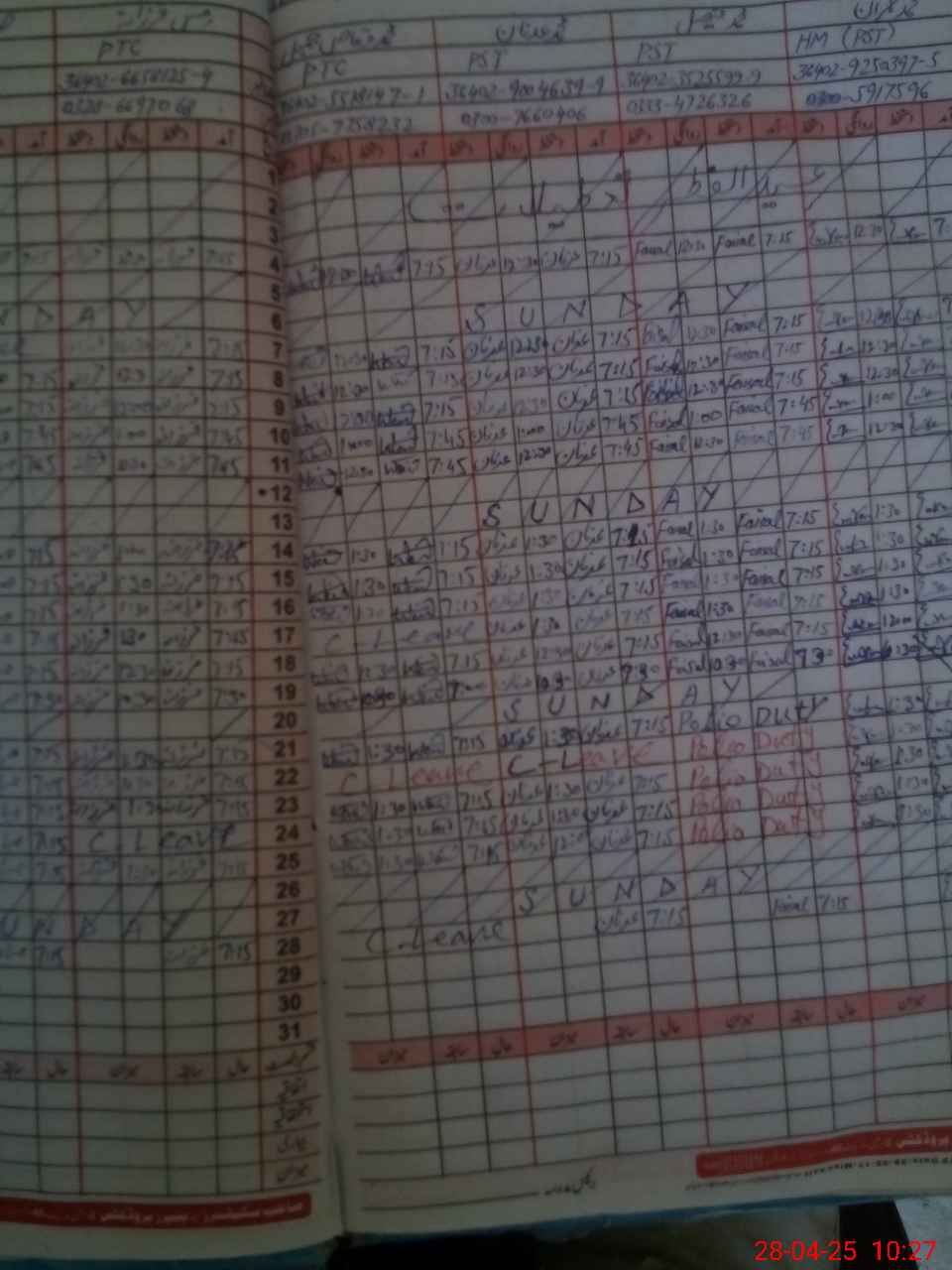 | CNIC | Full Name | Designation | R/C | Absence During Last Calender Month |