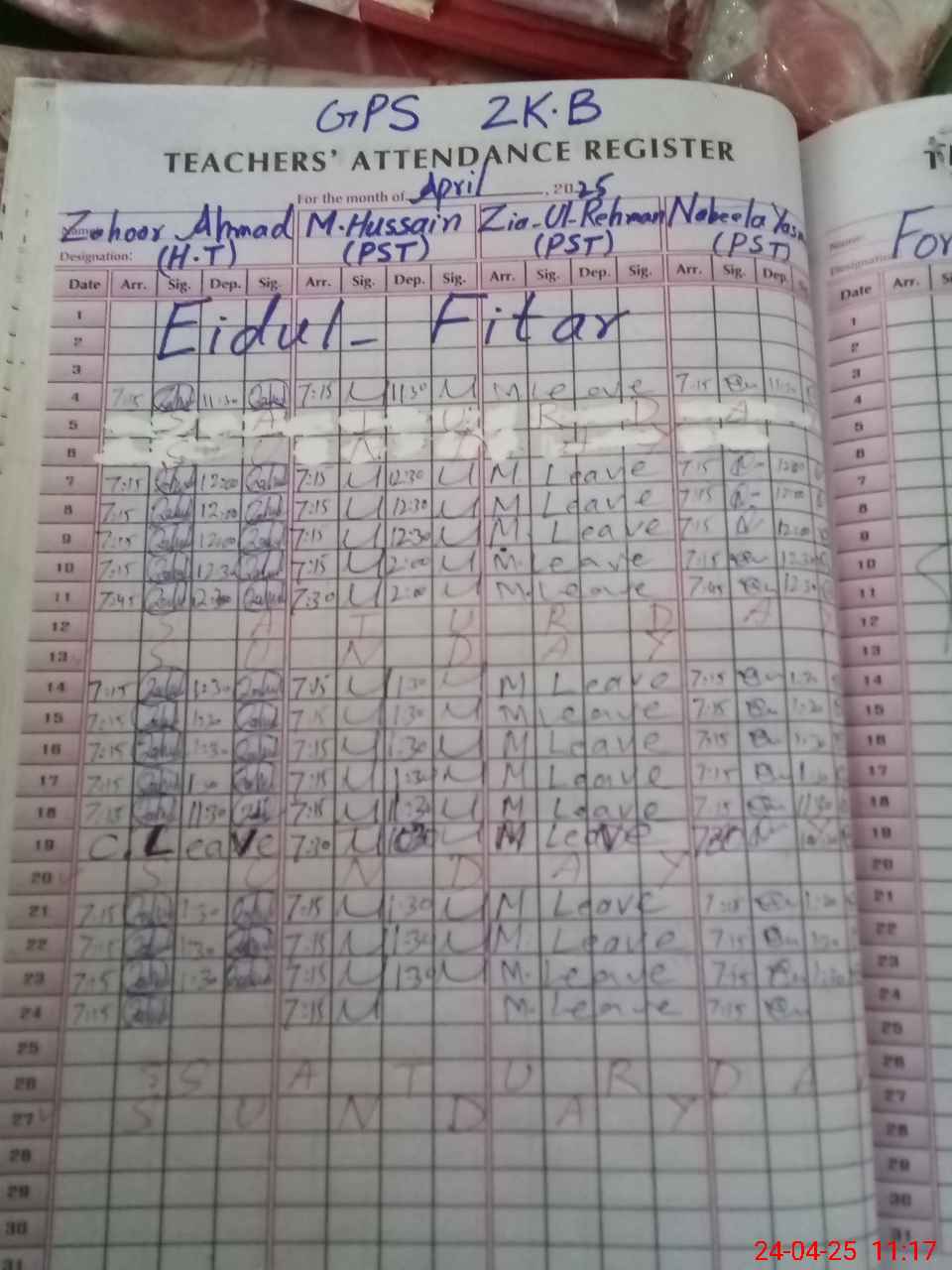 | Name: Za**** Ah**** Designation: (School Headmaster's/Headmistress's) PST Phone/Cell Number: 03**** |