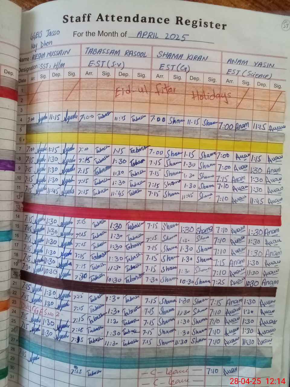 | Leave | Duty | Absent | Maternity | Medical | Ex- Pak |