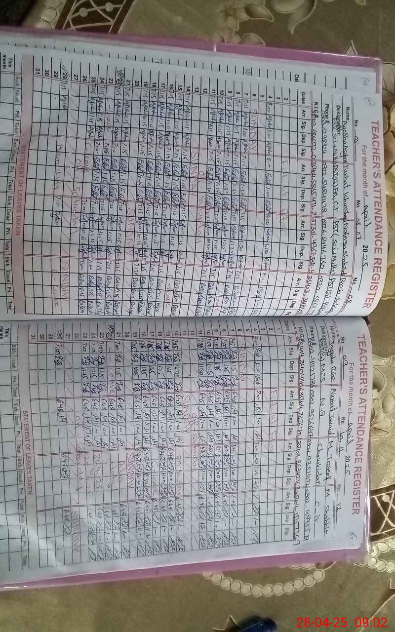 | 35**** | Fa**** Kh**** | PST | Regular | 0 | 0 | 0 | 0 | 0 | 0 | 0 | 0 | 0 | Exam Duty |