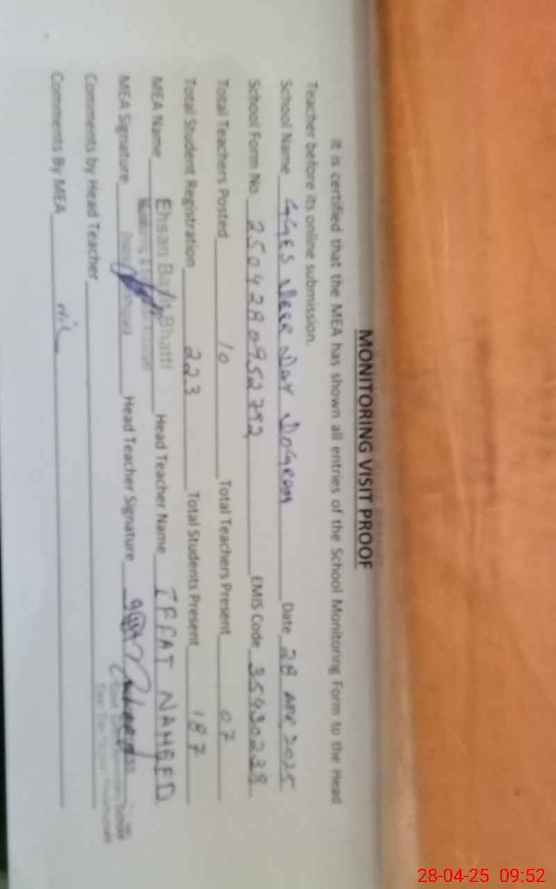 | EMIS Code: 35430239 | Name of School: GGES DEER DAY DOGRAN | |||