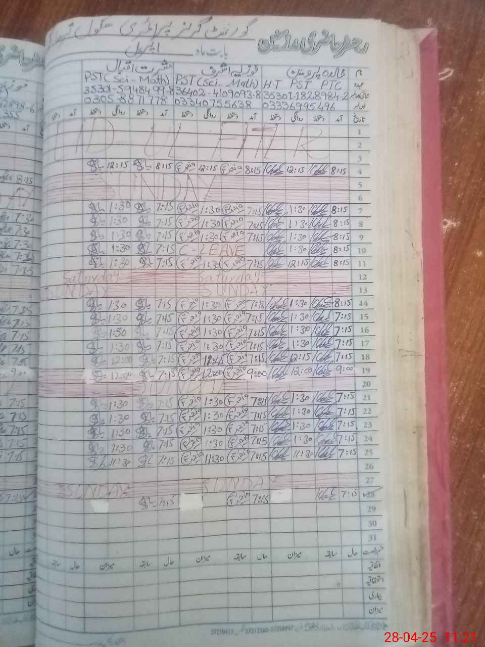 | Name: KH**** PE**** Designation: (School Headmaster's/Headmistress's) PST Phone/Cell Number: 03**** |