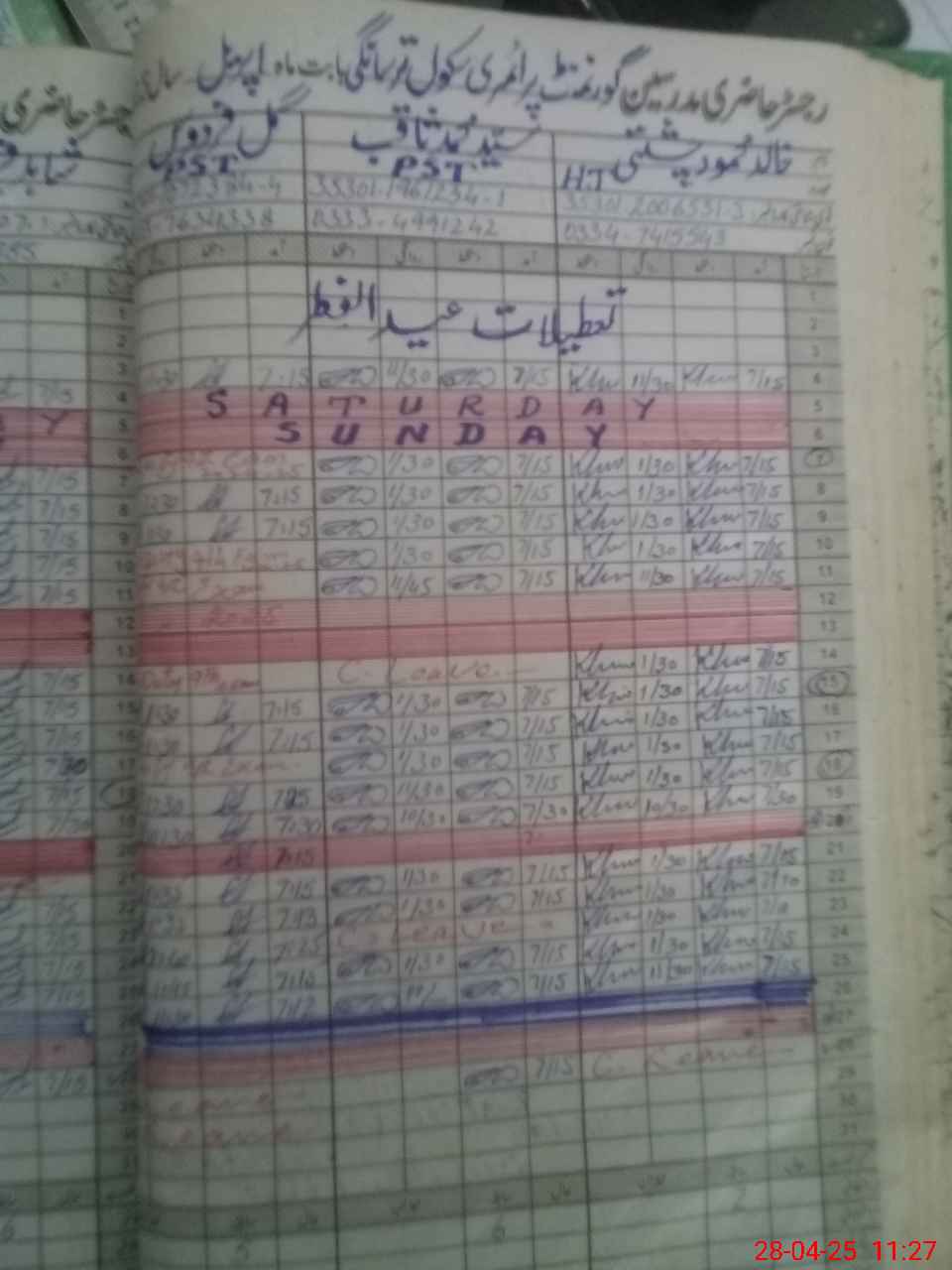 | Name: KH**** MA**** Designation: (School Headmaster's/Headmistress's) PST Phone/Cell Number: 03**** |