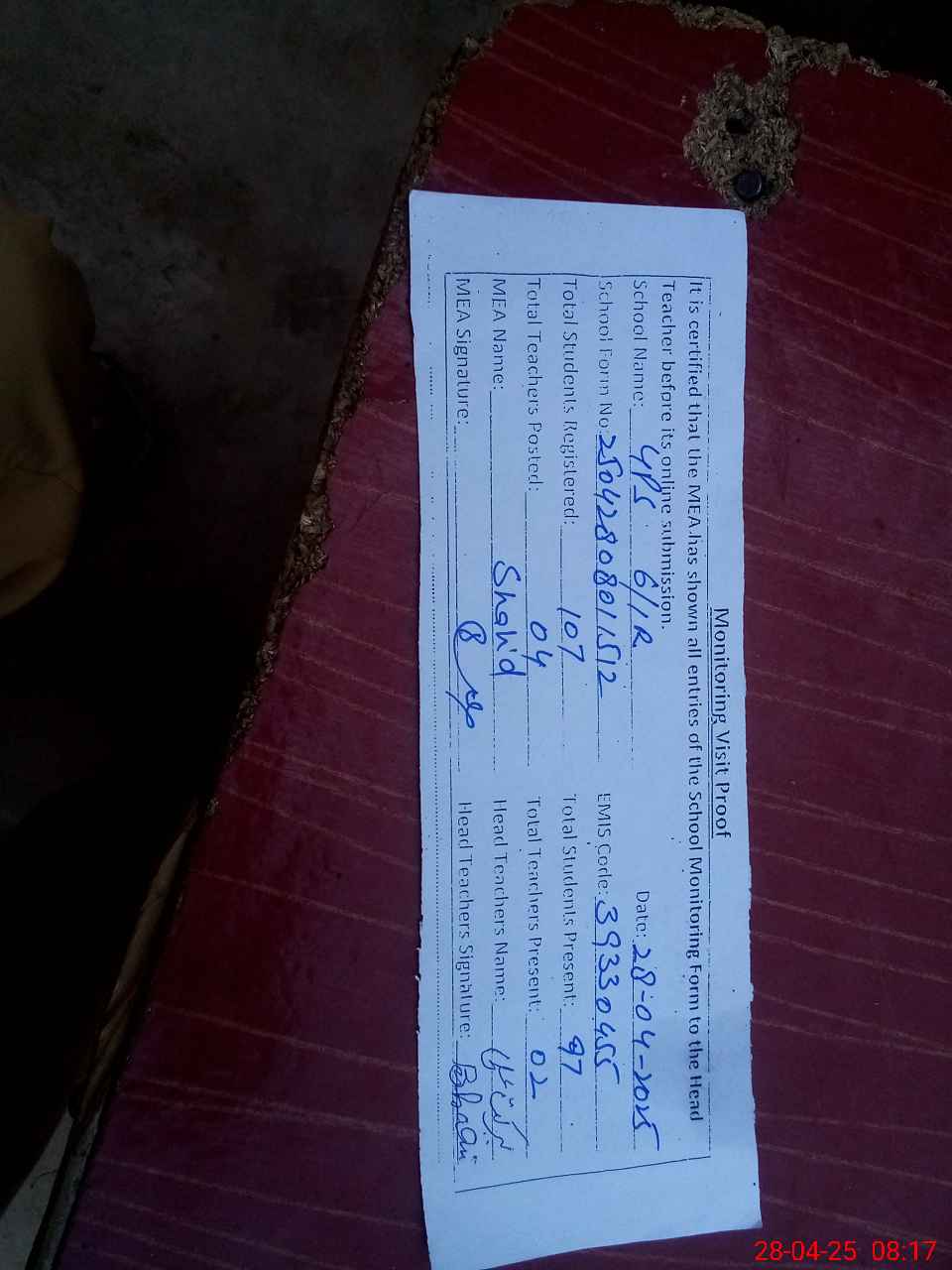 | EMIS Code: 39330455 | Name of School: GPS CHAK 6/1-R | |||