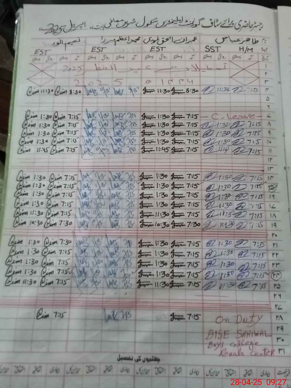 | 35**** | Ta**** Ab**** | SST | Regular | 0 | 0 | 0 | 0 | 0 | 0 | 0 | 0 | 0 | Exam Duty |