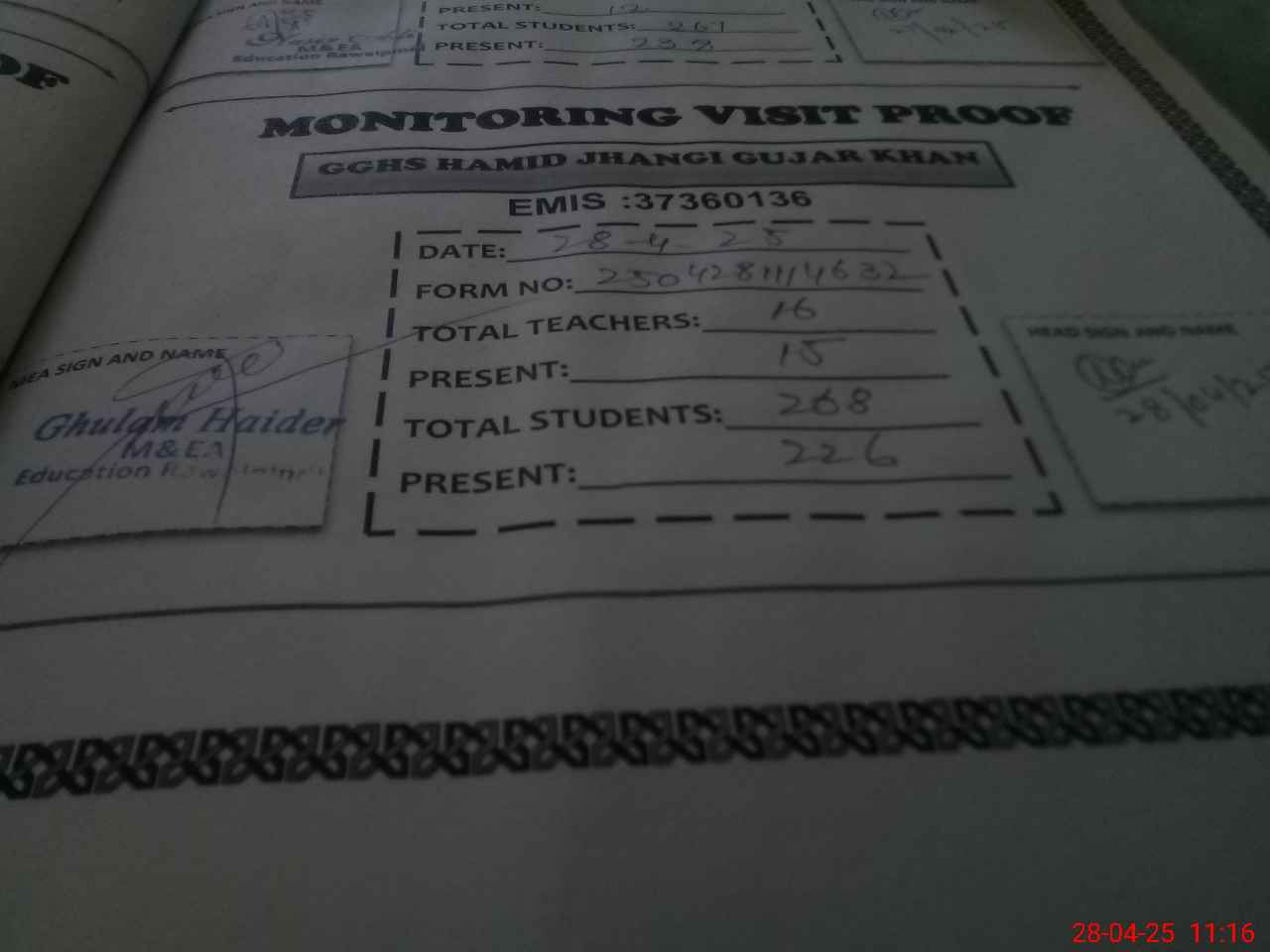 | EMIS Code: 37360136 | Name of School: GGHS HAMID JHANGI | |||