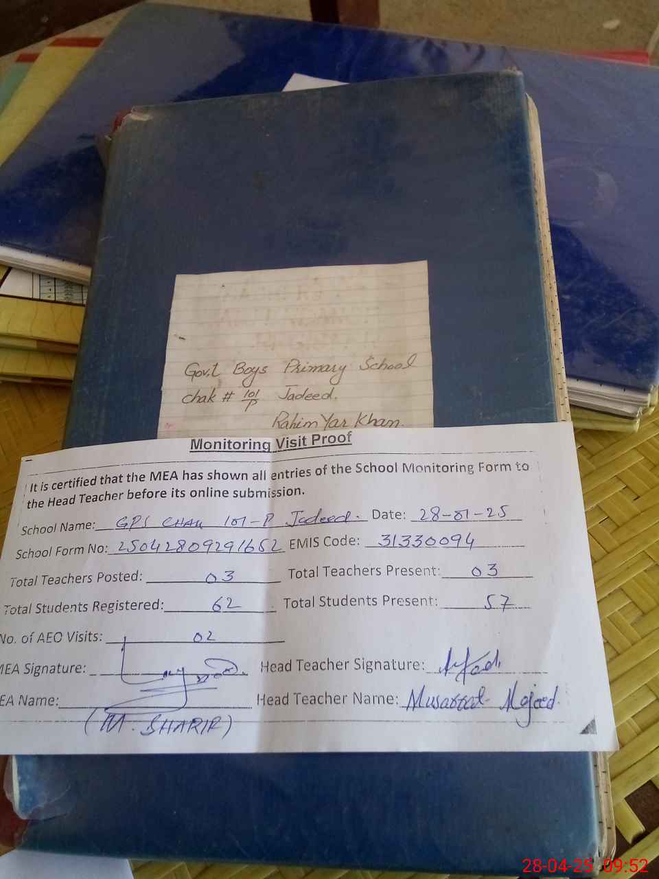 | EMIS Code: 31330094 | Name of School: GPS CHAK 101/P JADEED | |||