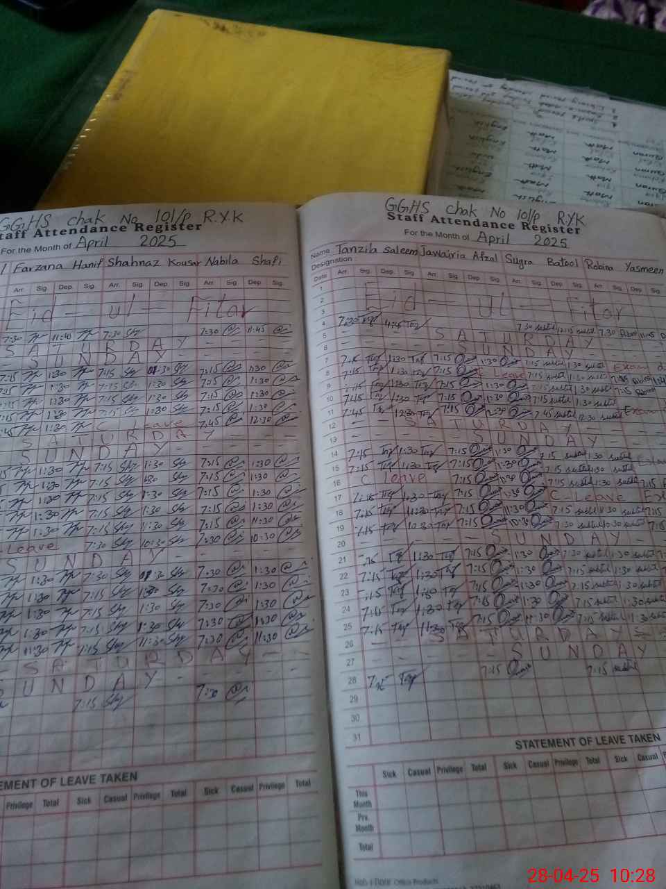 | Leave | Duty | Absent | Maternity | Medical | Ex- Pak |