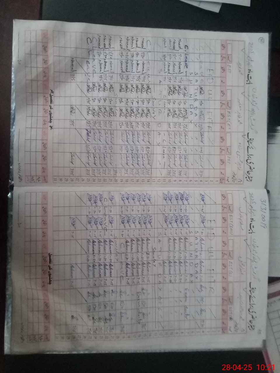 | Leave | Duty | Absent | Maternity | Medical | Ex- Pak |
