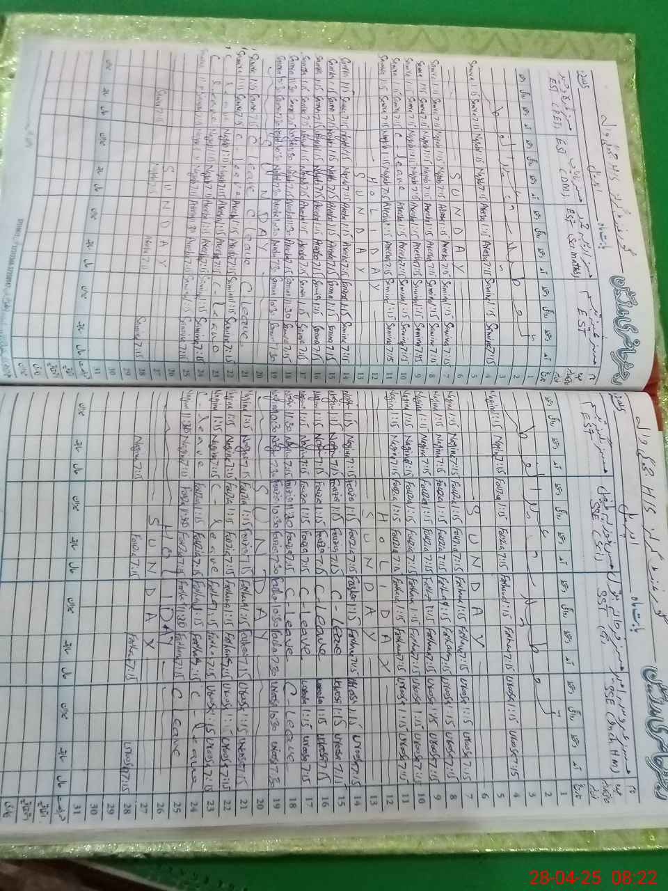 | Leave | Duty | Absent | Maternity | Medical | Ex- Pak |