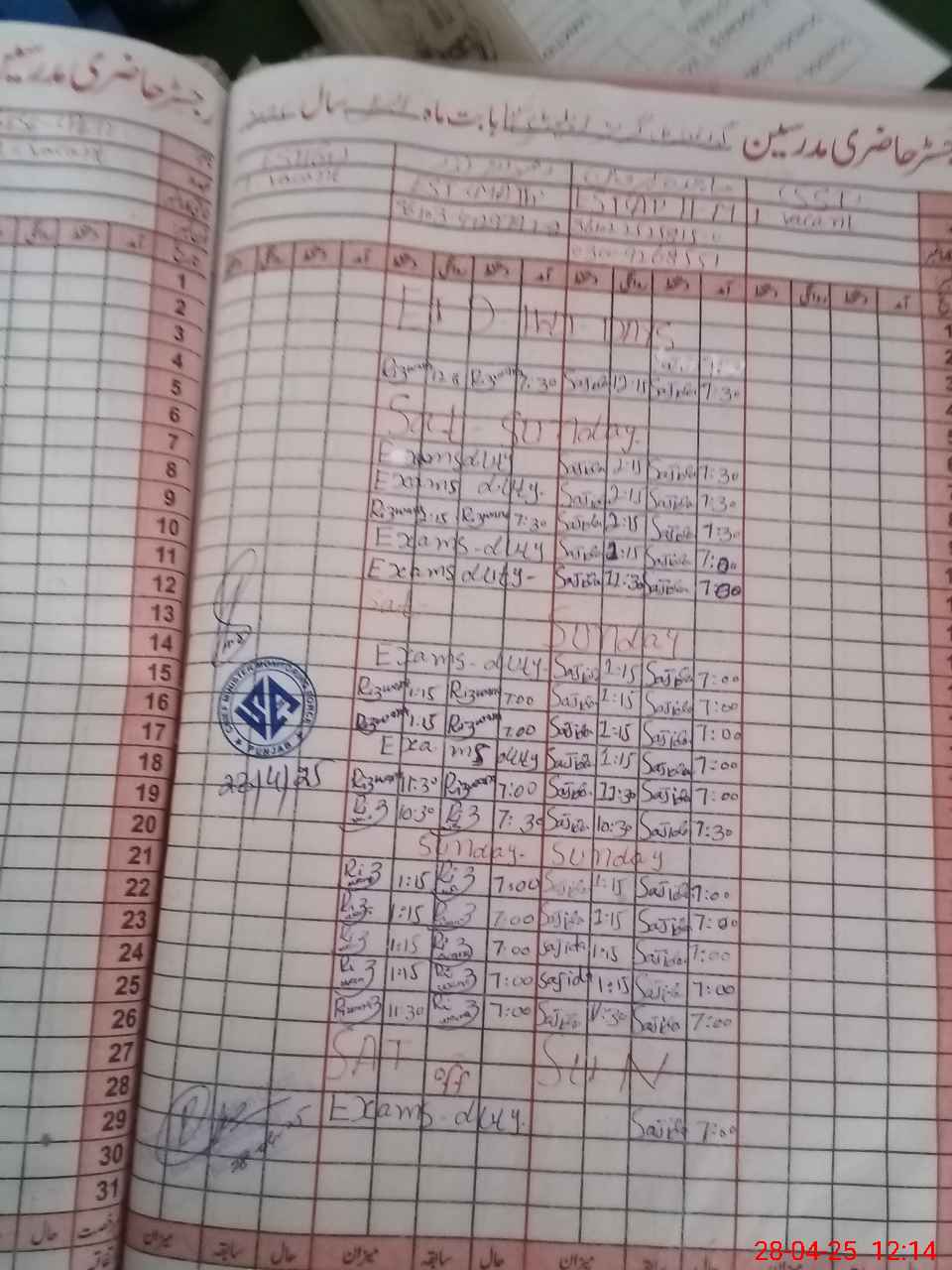 | 36**** | Ri**** Na**** | EST | Regular | 0 | 0 | 0 | 0 | 0 | 0 | 0 | 0 | 0 | Exam Duty |