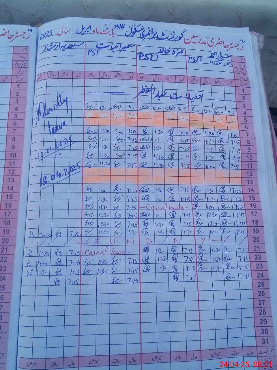| Leave | Duty | Absent | Maternity | Medical | Ex- Pak |