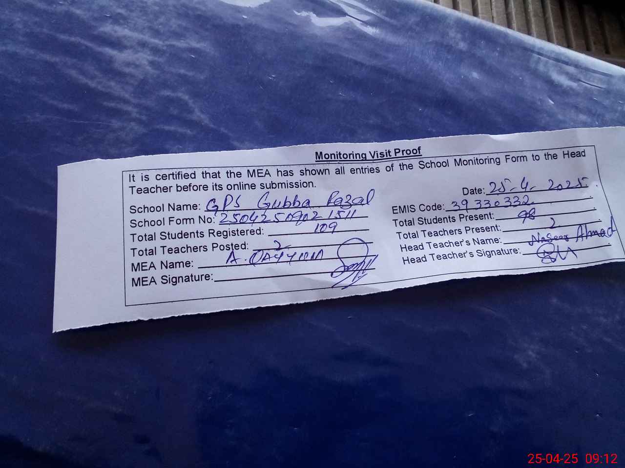 | EMIS Code: 39330332 | Name of School: GPS GUBBA FAZIL | |||