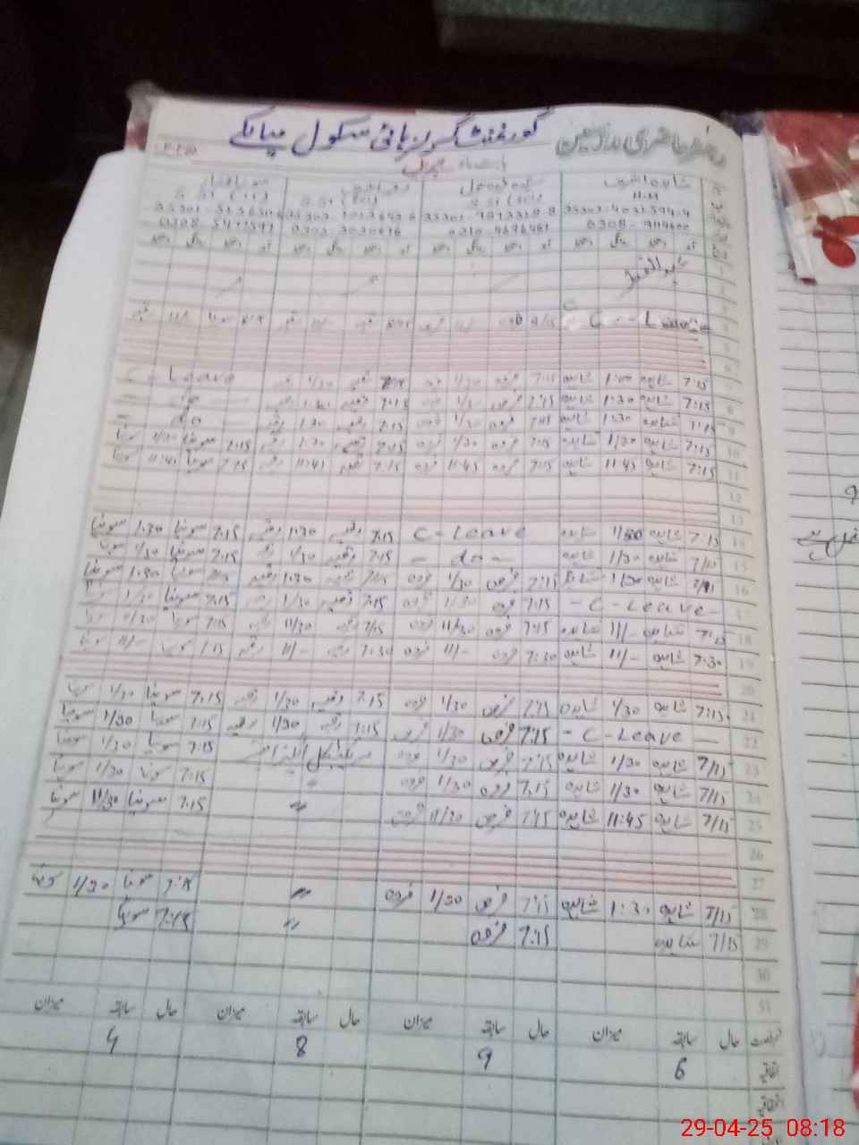 | CNIC | Full Name | Designation | R/C | Absence During Last Calender Month |