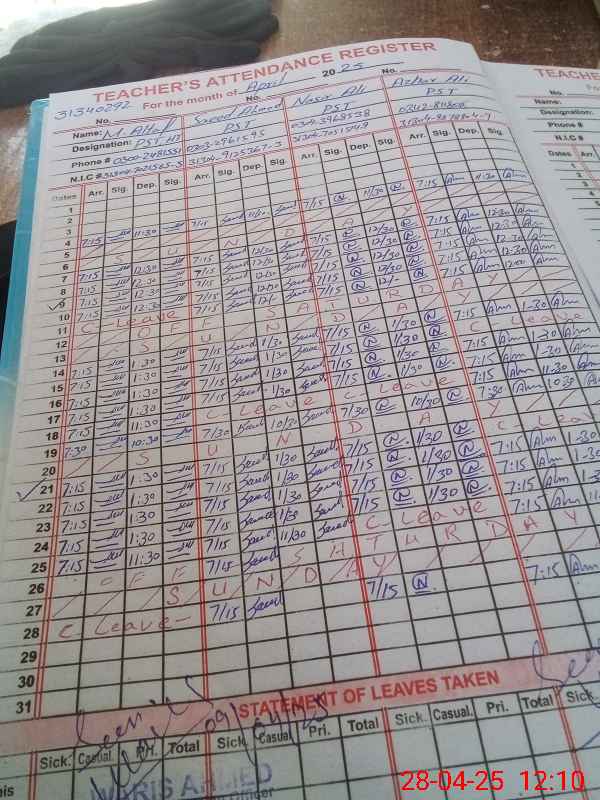| CNIC | Full Name | Designation | R/C | Absence During Last Calender Month |