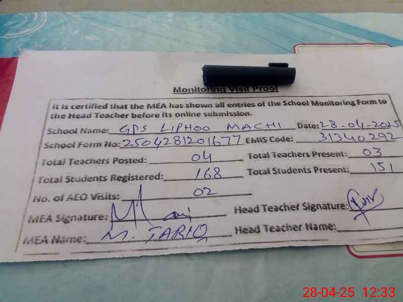 | EMIS Code: 31340292 | Name of School: GPS LIPHOO MACHI | |||