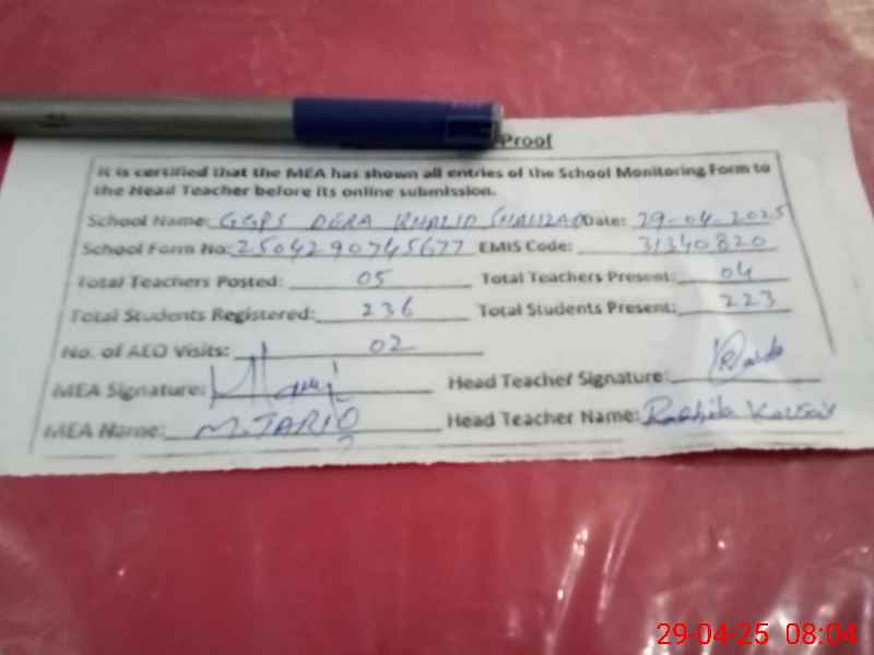 | EMIS Code: 31340820 | Name of School: GGPS DERA KHALID SHAHZAD | |||