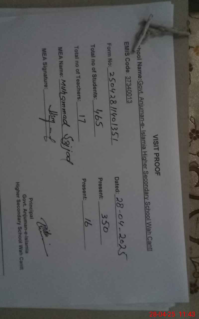| EMIS Code: 37340013 | Name of School: GHSS ANJUMAN-E-ISLAM WAH CANTT | |||