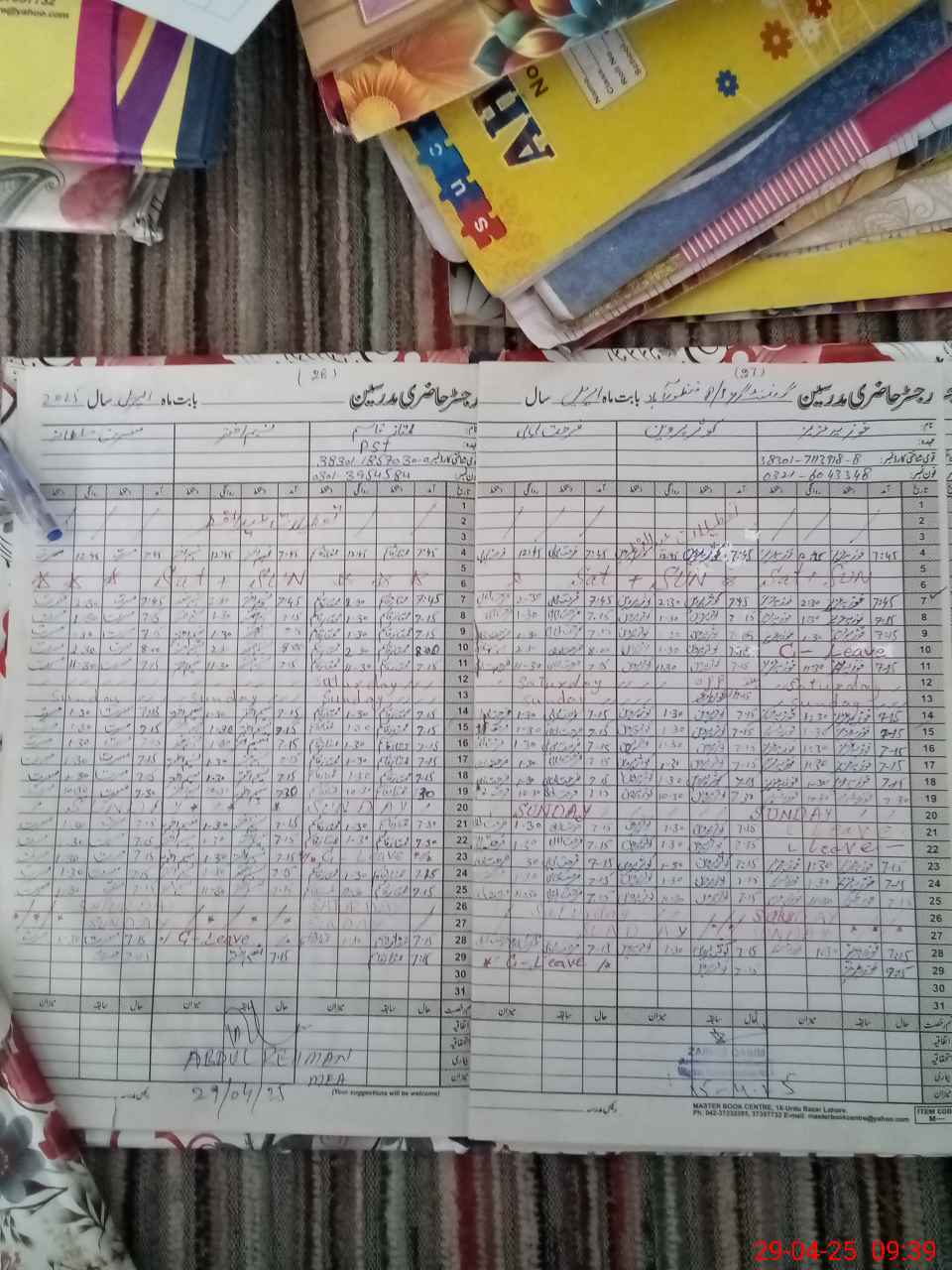 | CNIC | Full Name | Designation | R/C | Absence During Last Calender Month |