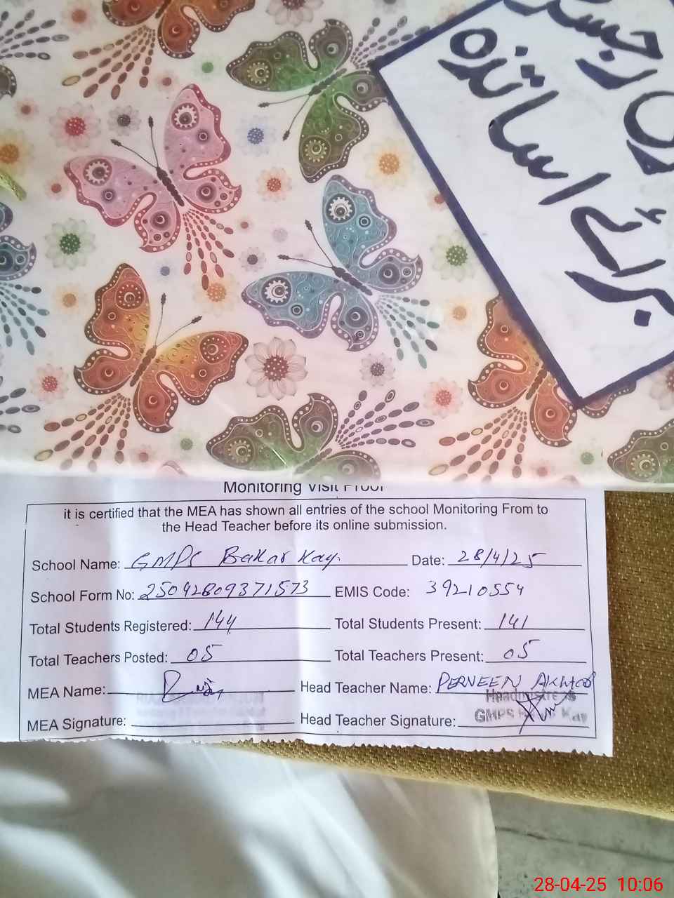 | EMIS Code: 39210554 | Name of School: GMPS BAKAR KAY | |||