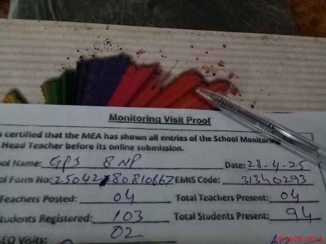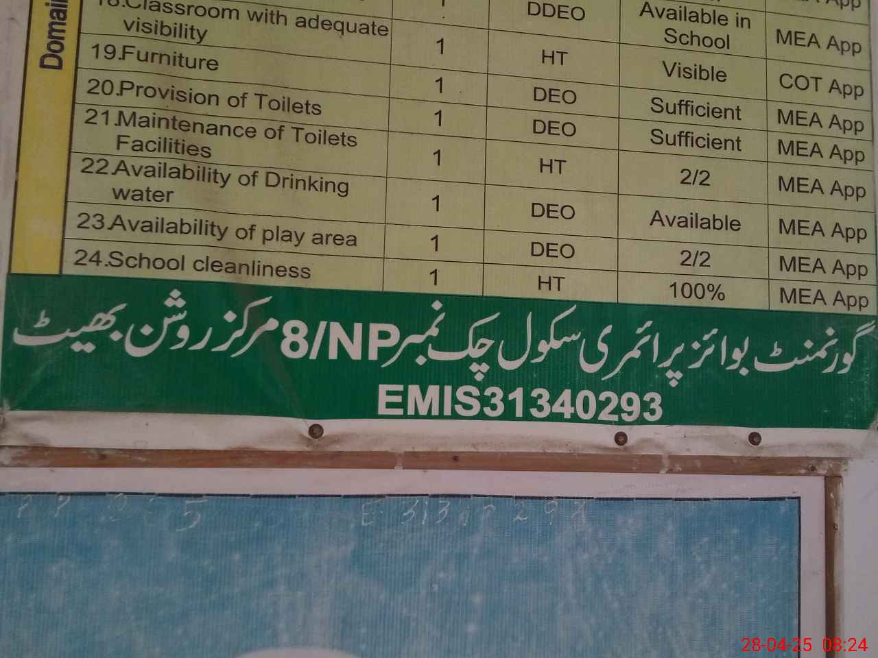 | EMIS Code: 31340293 | Name of School: GPS CHAK NO 8 NP | |||