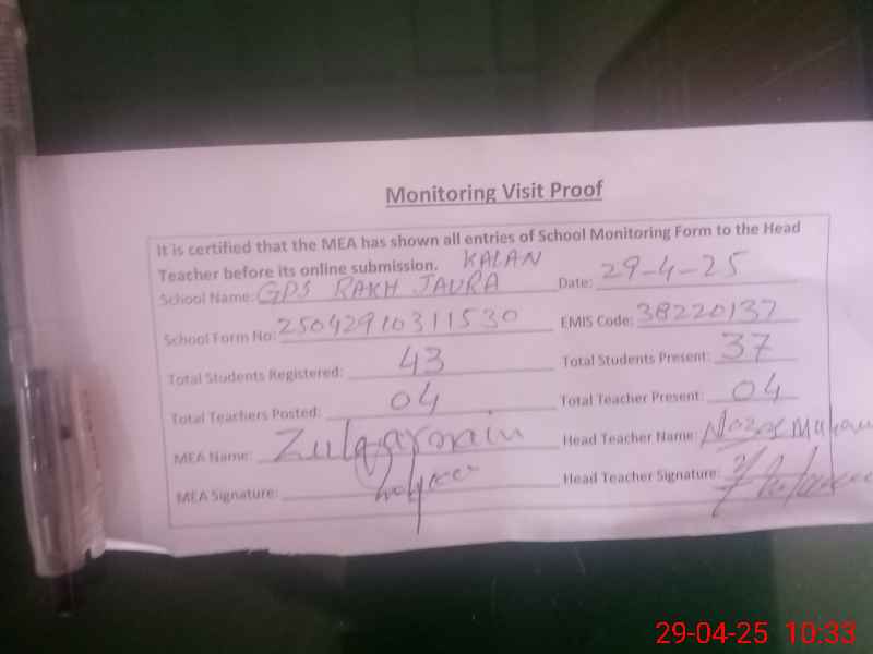 | EMIS Code: 38220137 | Name of School: GPS RAKH JAURA KALAN | |||