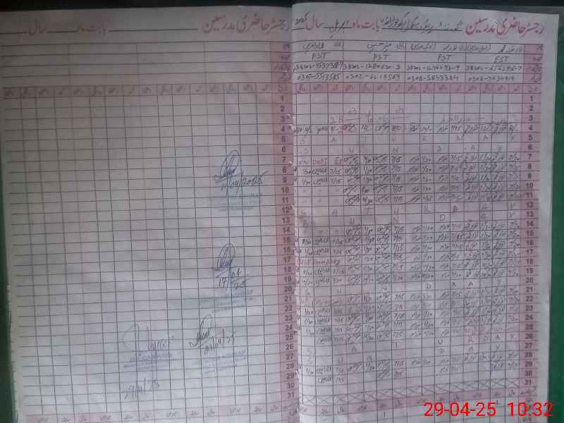 | CNIC | Full Name | Designation | R/C | Absence During Last Calender Month |