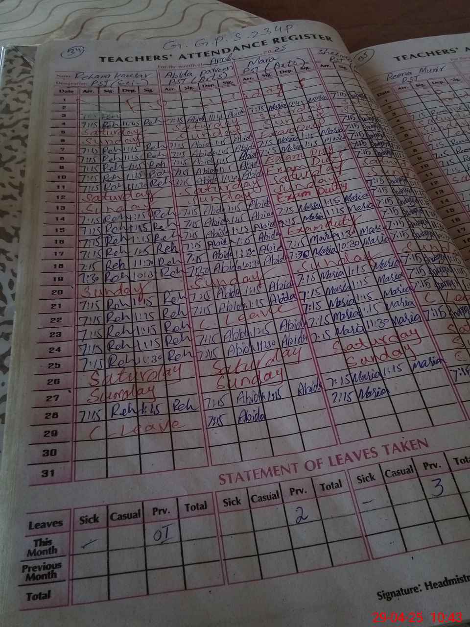 | Leave | Duty | Absent | Maternity | Medical | Ex- Pak |