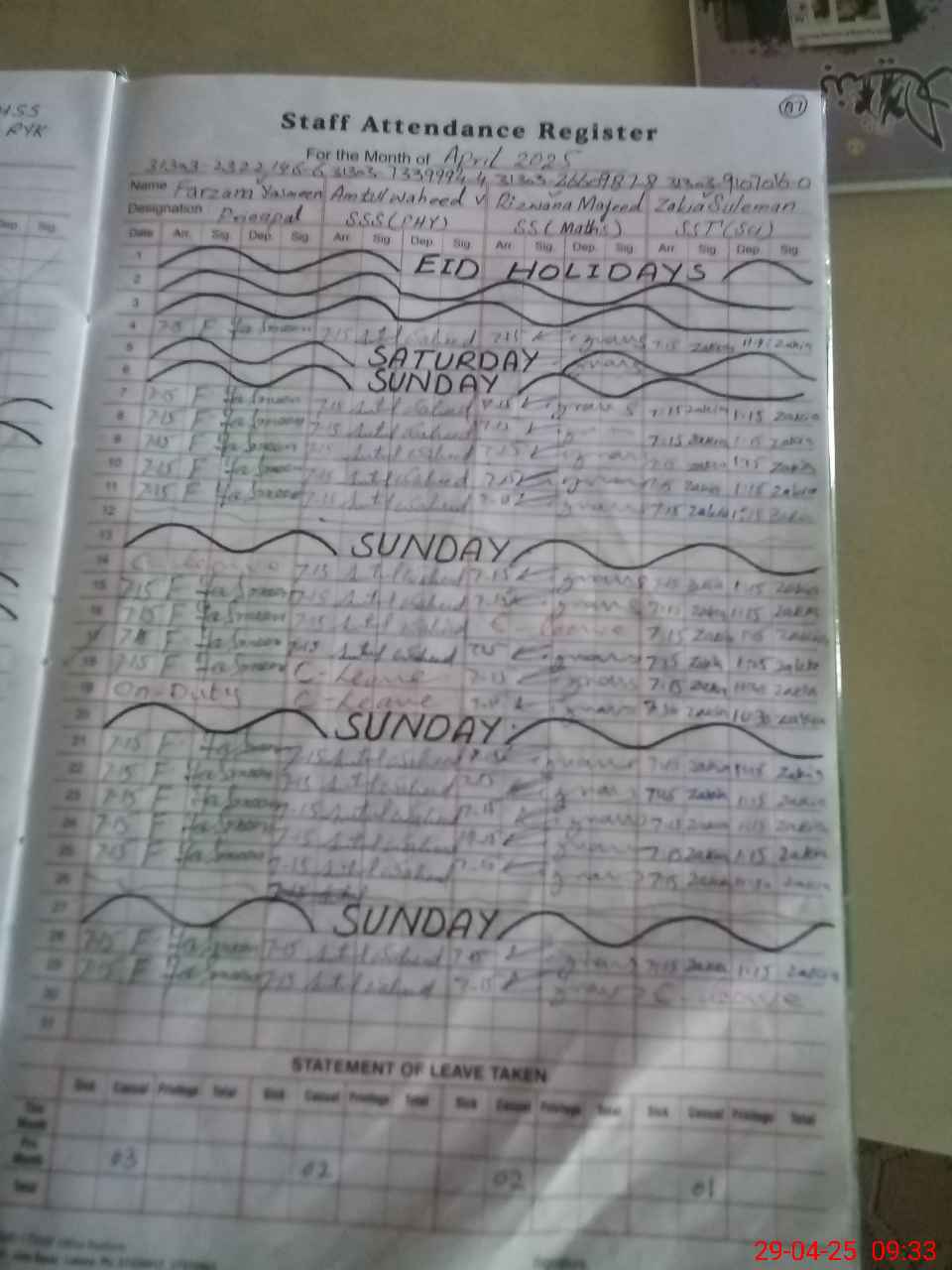 | 31**** | Sa**** Sh**** | Contract | 0 | 0 | 0 | 0 | 0 | 0 | 0 | 0 | 0 | Exam Duty | |