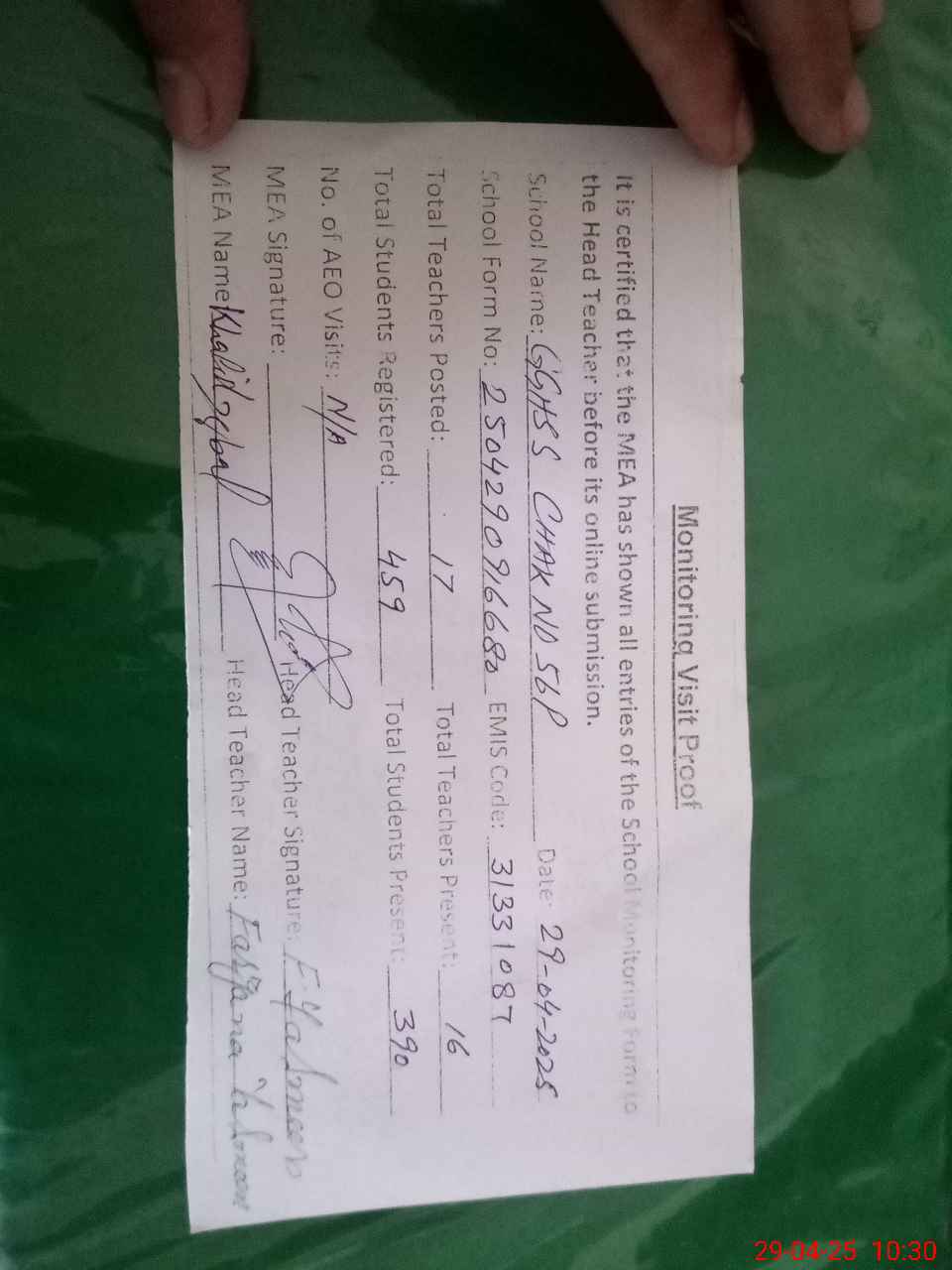 | EMIS Code: 31331087 | Name of School: GGHSS CHAK NO. 56/P | |||