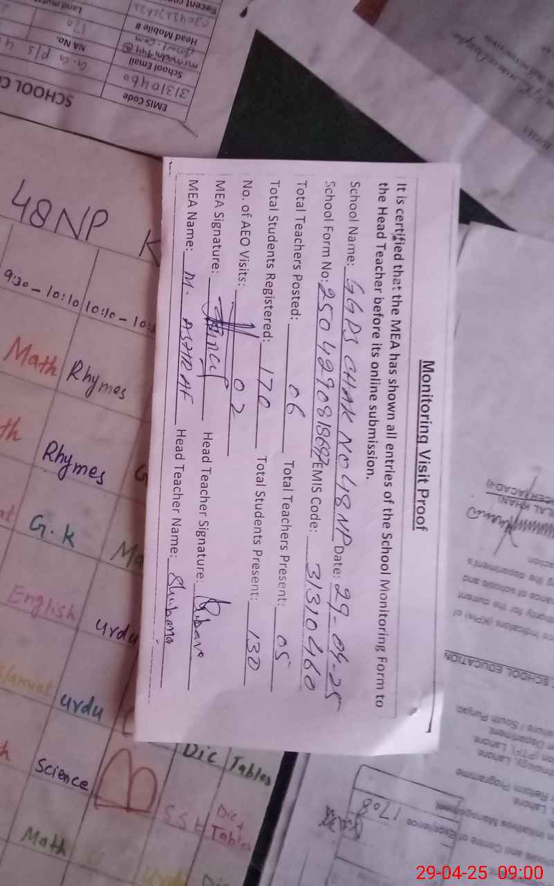 | EMIS Code: 31310460 | Name of School: GGPS CHAK NO. 48/NP | |||